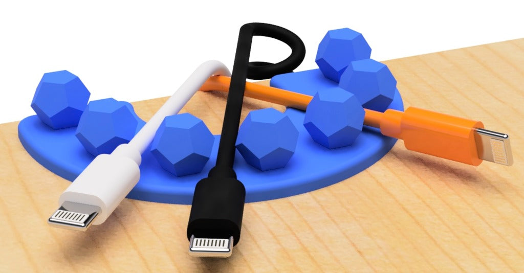 Ten uchwyt na kabel USB został zaprojektowany jako regularny dwunastościan i oferuje praktyczne i stylowe rozwiązanie do przechowywania kabli w uporządkowany sposób. Dzięki unikalnemu geometrycznemu wzornictwu przyczynia się nie tylko do uporządkowania biurka, ale także do nowoczesnej estetyki w miejscu pracy lub w domu. Użyj tego uchwytu na kabel, aby zapobiec plątaniu się kabli USB lub upadaniu za meble. Jego kształt i waga zapewniają, że kable pozostaną na swoim miejscu i będą łatwo dostępne, gdy ich potrzebujesz. Idealny i funkcjonalny dodatek do każdej przestrzeni, w której problemem są splątane kable.