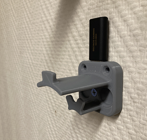 Uchwyt na słuchawki z prowadzeniem kabli i miejscem na dongle USB