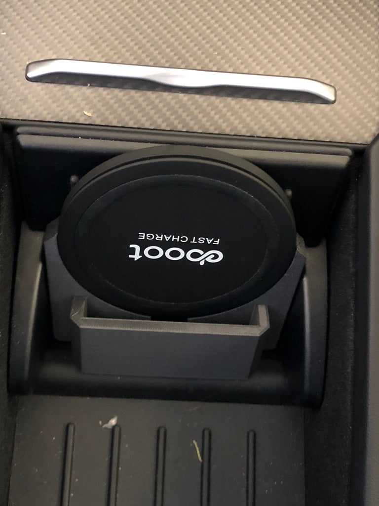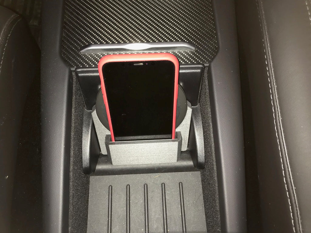 Podstawa konsoli środkowej Tesla Model-X do iPhone'a i bezprzewodowej ładowarki Qi