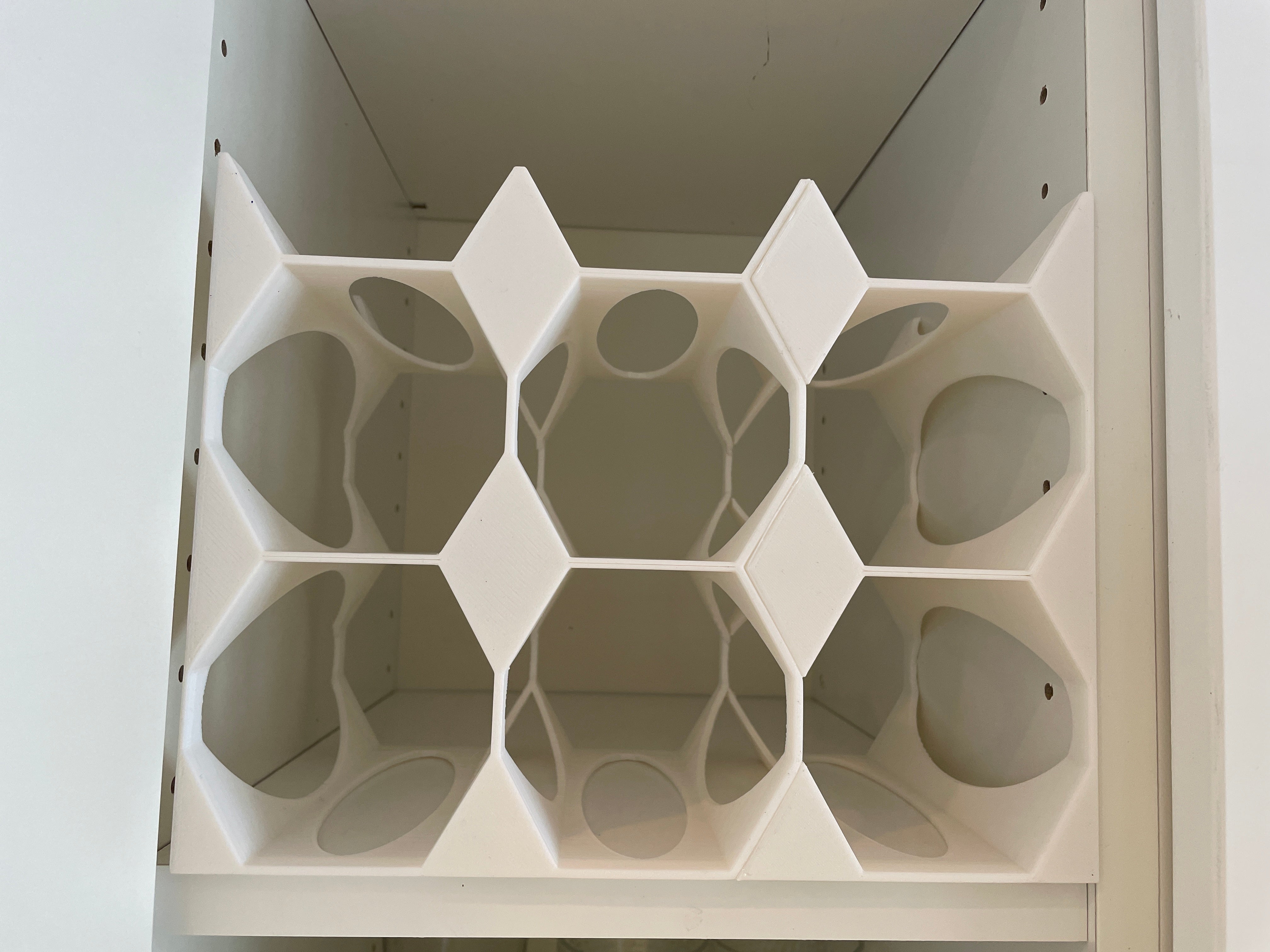 Stojak oferuje elastyczne przechowywanie, przy czym dwa dolne poziomy mogą pomieścić butelki o średnicy do 79 mm. Górny poziom jest wystarczająco przestronny na butelkę Nalgene lub podobne butelki o średnicy do 92 mm. Dzięki temu możesz przechowywać różne rodzaje napojów razem.