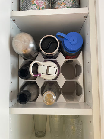 Uporządkuj przechowywanie butelek dzięki temu praktycznemu stojakowi, przeznaczonemu zarówno do butelek na wodę, jak i butelek na wino. Pomaga utrzymać porządek w kuchni, spiżarni lub w dowolnym miejscu, w którym chcesz mieć schludną prezentację swoich napojów.
