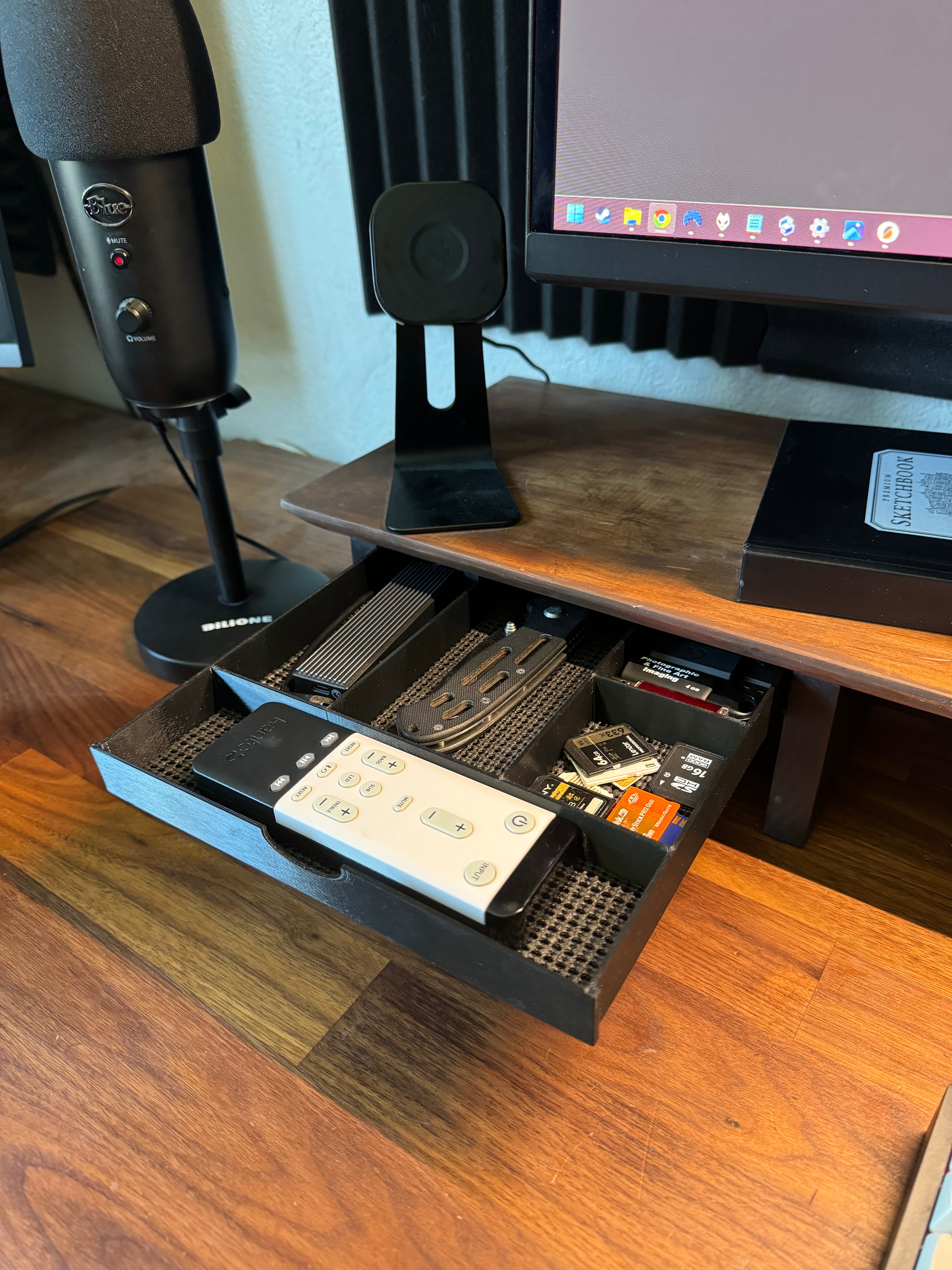 Ulepsz swoje miejsce pracy dzięki tej praktycznej półce na biurko, która wyposażona jest w smart podbiurkowe szuflady, doskonałe do przechowywania małych przedmiotów. Zaprojektowane, aby idealnie pasować pomiędzy nogami twojego biurka, te rozwiązania w postaci szuflad pozwalają na łatwe przechowywanie i organizowanie artykułów biurowych, a także można je całkowicie wysunąć, aby użyć jako tacy.