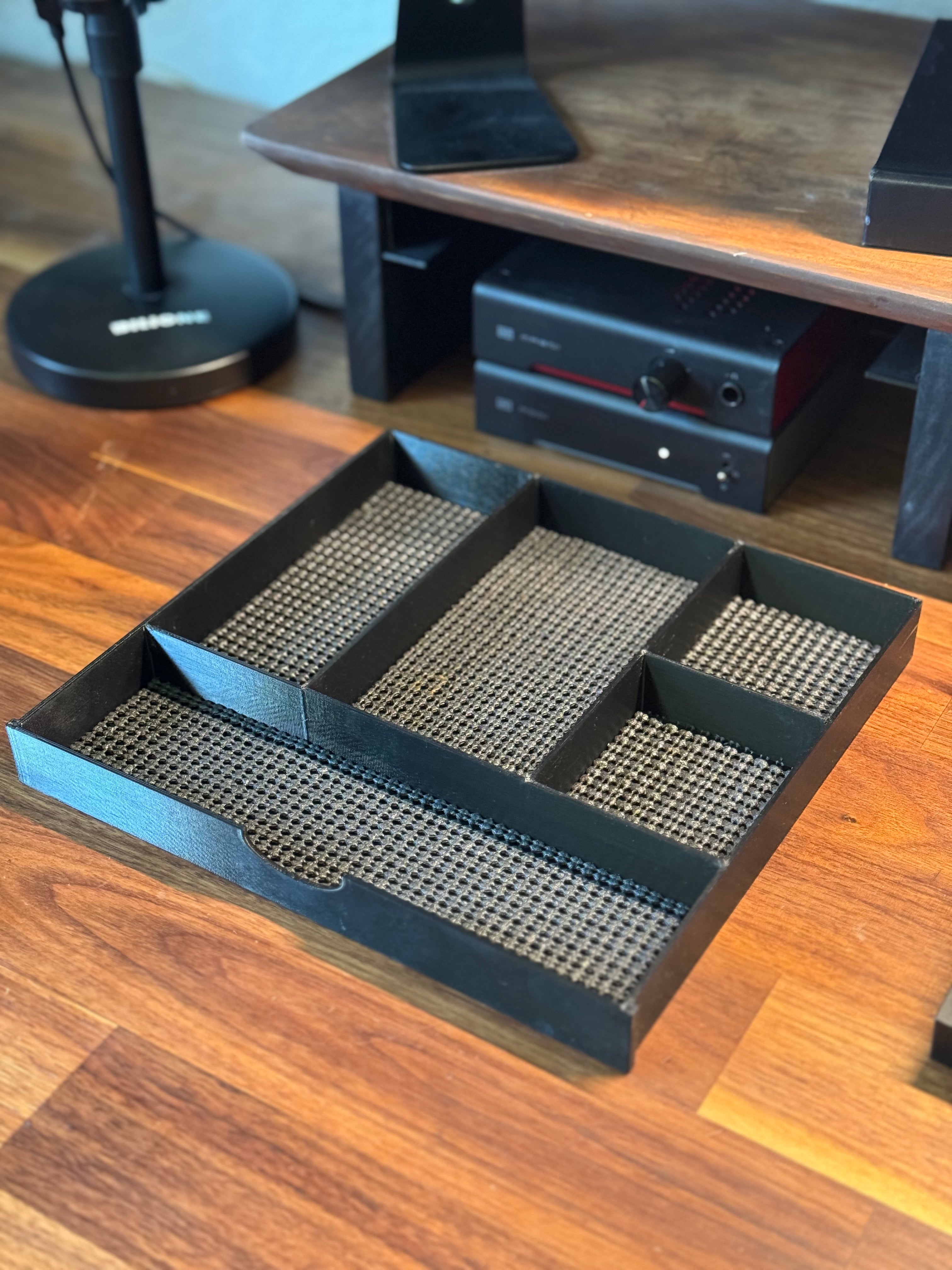 Wykonany z trwałego materiału PETG, system przechowywania jest nie tylko funkcjonalny, ale także stylowy, co czyni go idealnym rozwiązaniem zarówno dla biur domowych, jak i profesjonalnych miejsc pracy. Wbudowana poduszka chwytająca wewnątrz szuflad pomaga zmniejszyć hałas i utrzymać twoje rzeczy w bezpiecznym miejscu podczas ich przemieszczania.