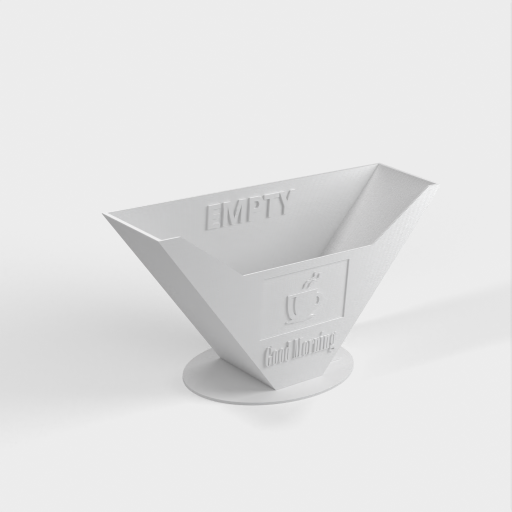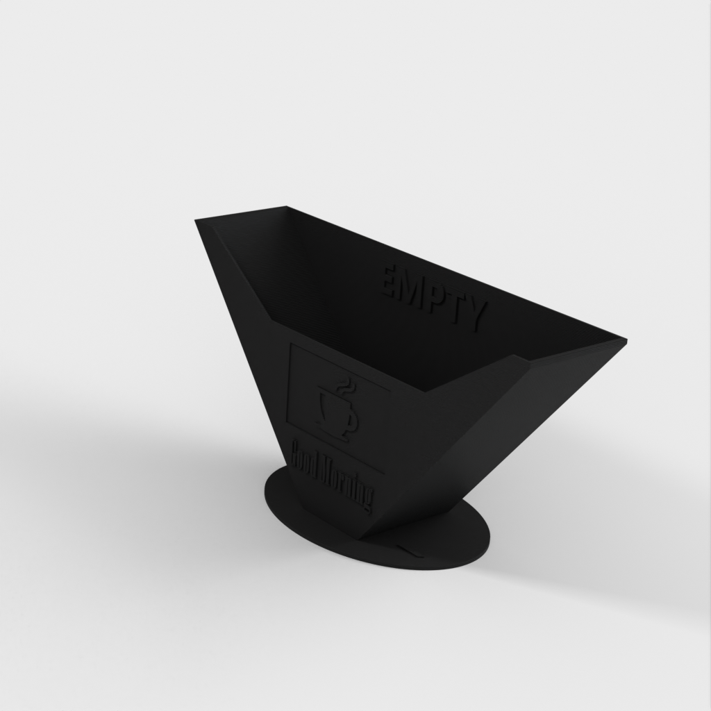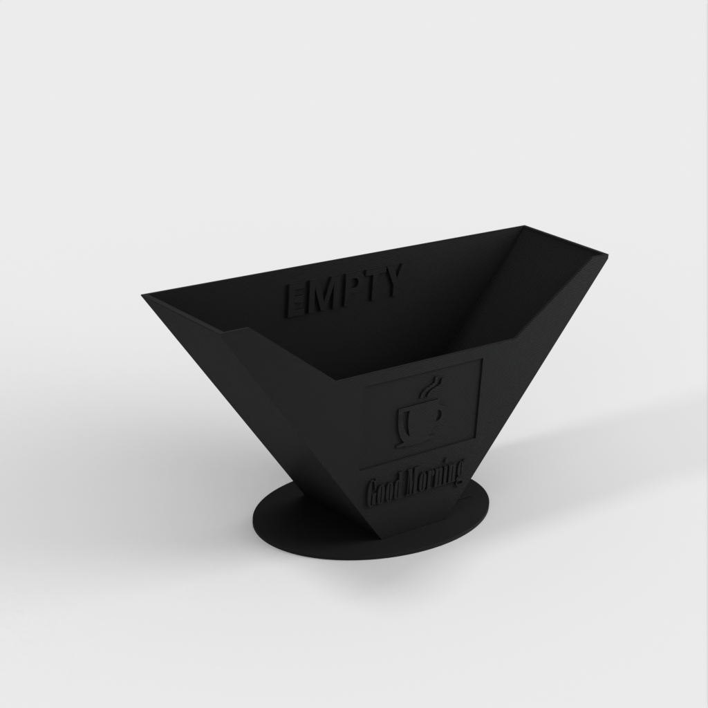 To jest uchwyt na filtr do kawy, który zrobiłem w kreatorze 3D. Został zaprojektowany tak, aby utrzymać filtr do kawy na miejscu podczas przygotowywania porannej kawy. Jest bardzo łatwy w użyciu i pasuje do większości standardowych filtrów do kawy.
