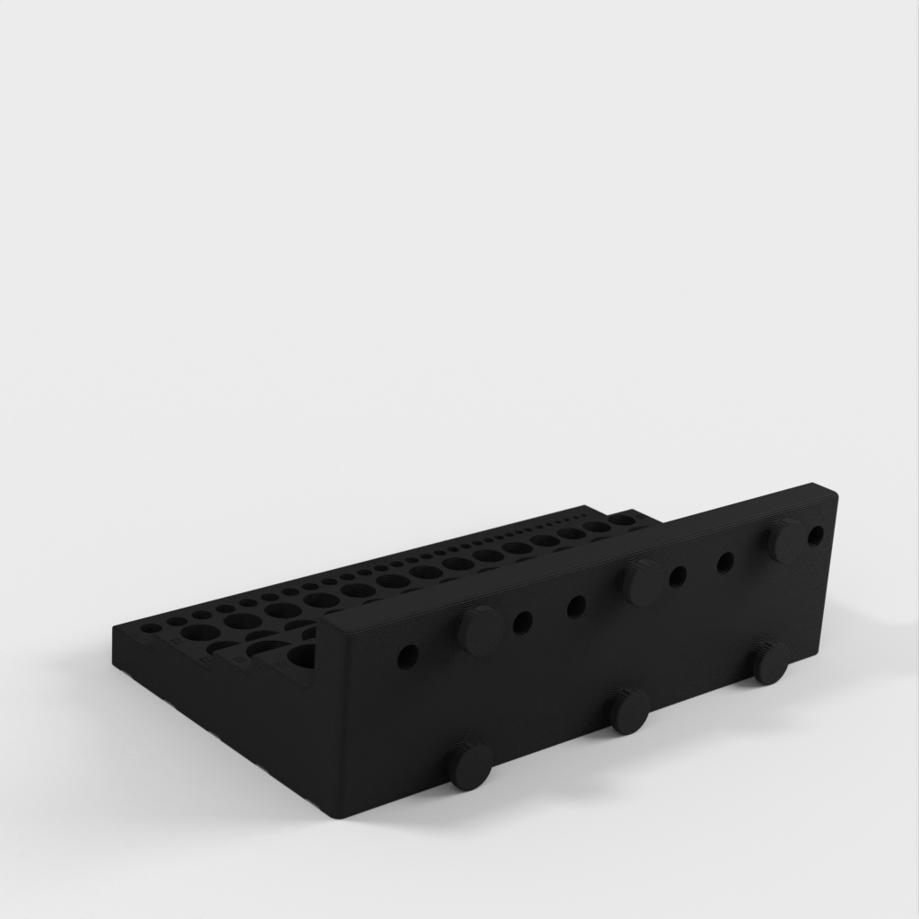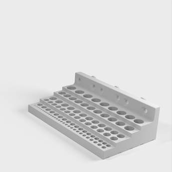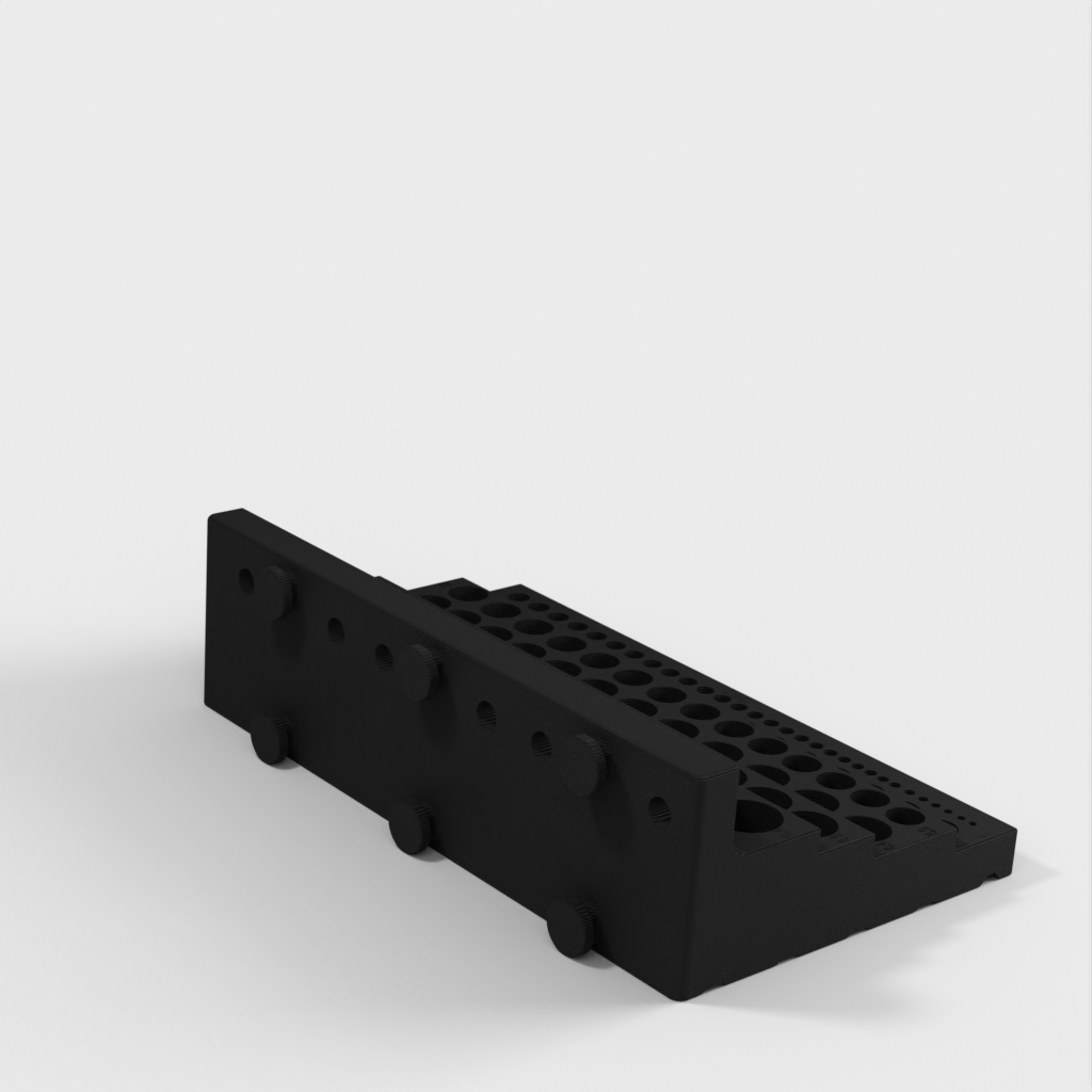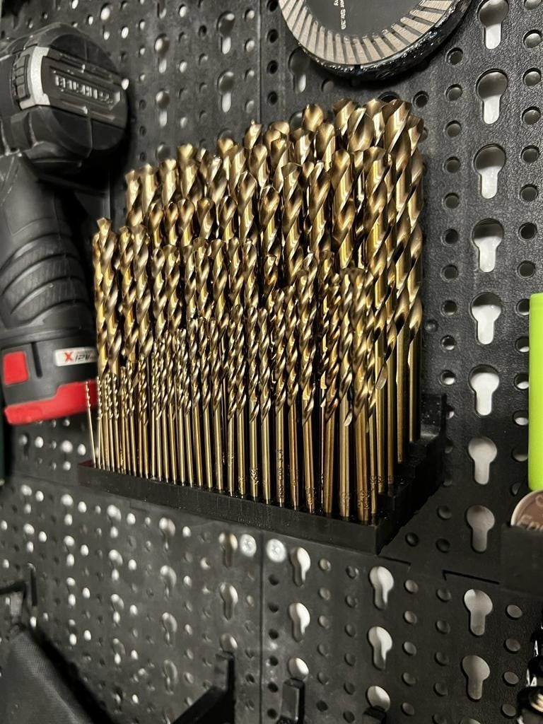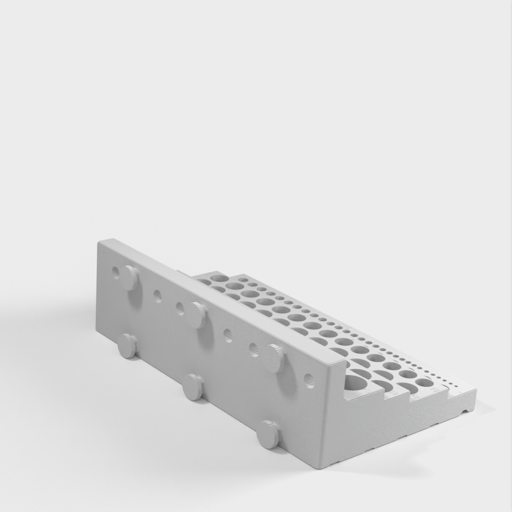 Jest to uchwyt na wiertła, który zabezpiecza i porządkuje wiertła w rozmiarach od 1 mm do 10,4 mm w odstępach co 0,1 mm. Został zaprojektowany tak, aby był kompatybilny z tablicą do przechowywania narzędzi Parkside Wall Tool, co oznacza, że można ją łatwo zamontować na tablicy, aby utrzymać porządek wierteł oraz utrzymać porządek i wydajność w miejscu pracy. Dzięki tej kombinacji zapewniasz kompletne i praktyczne rozwiązanie do przechowywania wierteł i narzędzi.