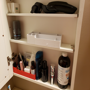 Ten praktyczny organizer został zaprojektowany, aby skutecznie przechowywać małe przedmioty razem i zorganizowane, szczególnie w szafkach medycznych. Pomaga zapobiegać wypadaniu zawartości po otwarciu szafki i zapewnia, że wszystko jest łatwe do znalezienia i dostępne. Oprócz zastosowania w szafce medycznej organizer nadaje się również do tworzenia porządku na biurkach, półkach lub innych blatach, gdzie istnieje potrzeba gromadzenia drobiazgów. Dzięki temu organizerowi możesz łatwo stworzyć schludne i uporządkowane środowisko w różnych pomieszczeniach.