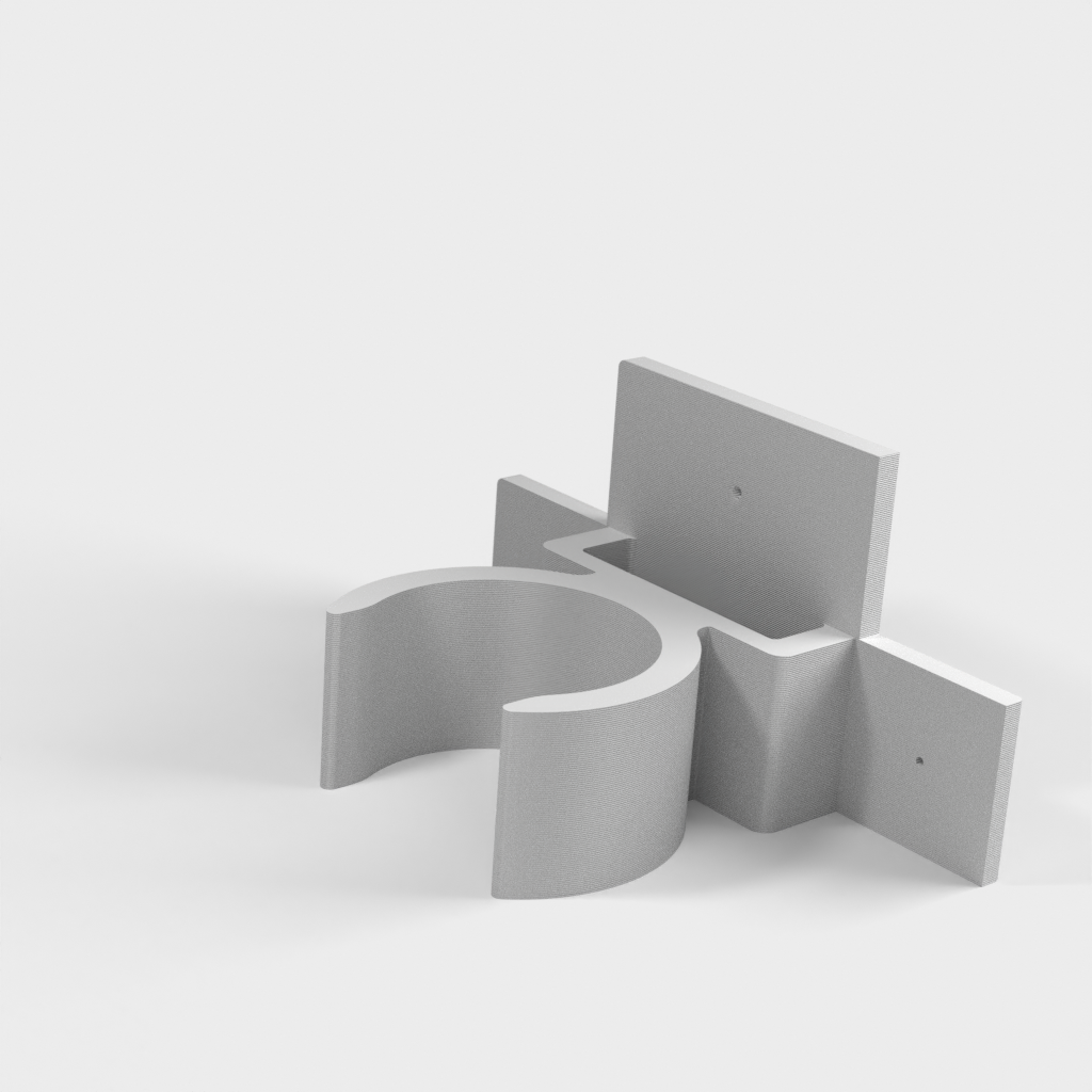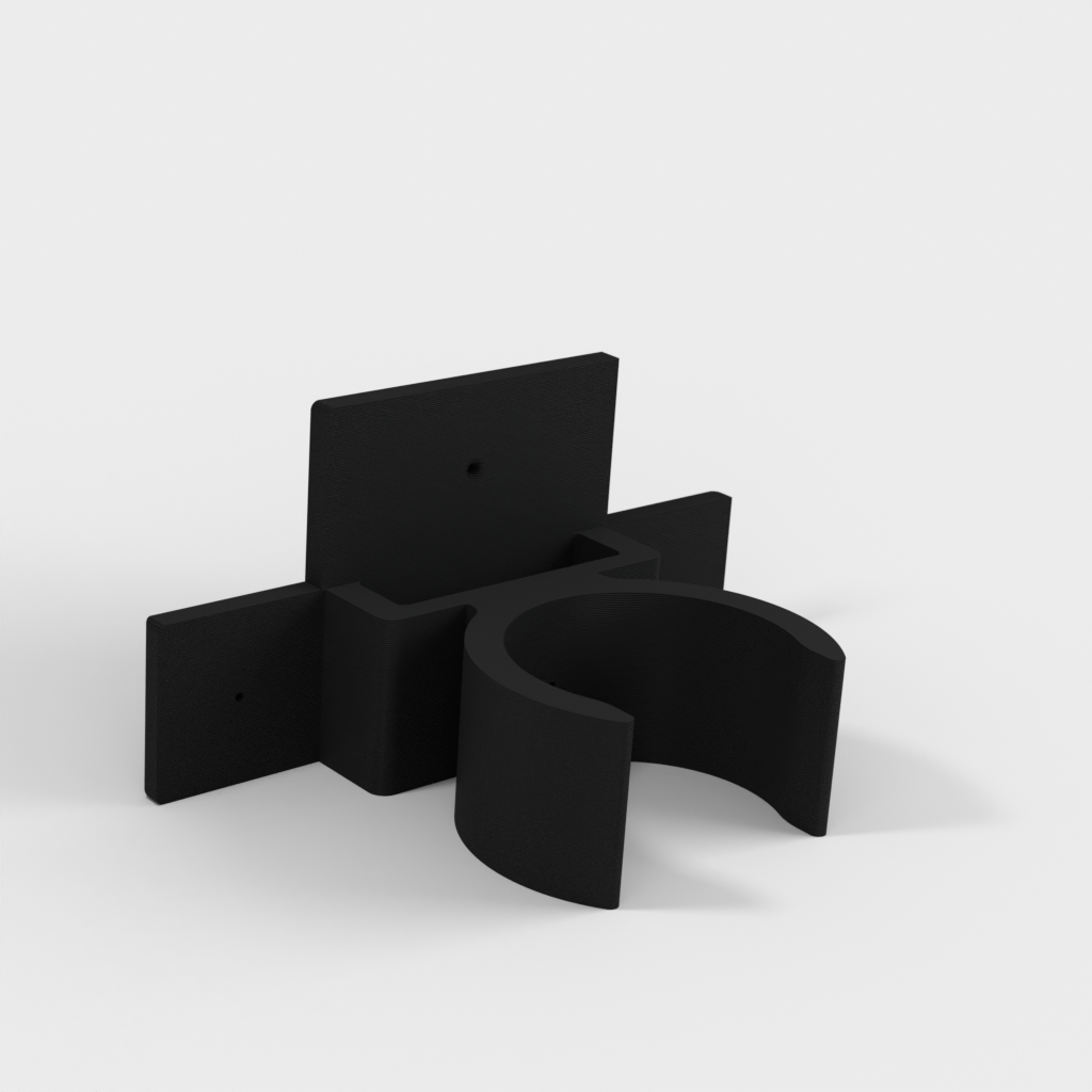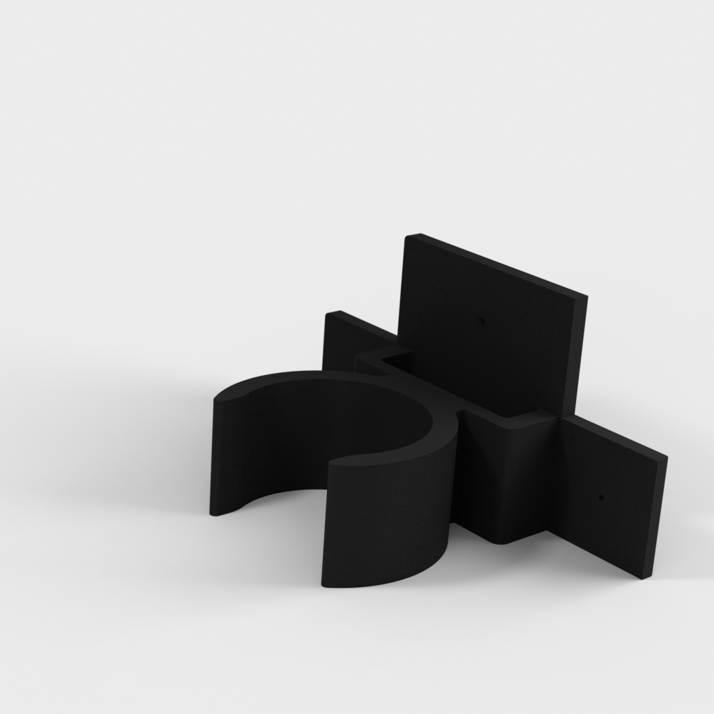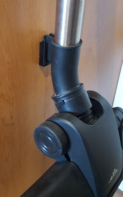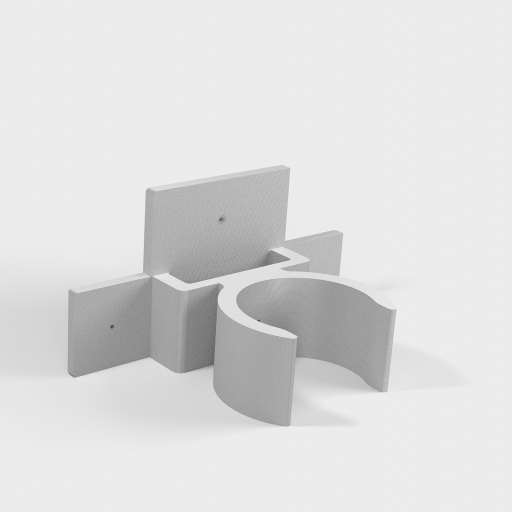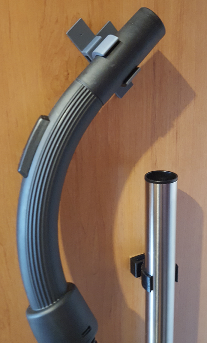 Uchwyt do rury odkurzacza ETA Stellar. Dolna część podpiera części rury w kształcie litery T i zaleca się przymocowanie jej za pomocą śrub, ponieważ przenosi ona większość ciężaru. Górna część jest przeznaczona do rur o średnicy 32 mm, ale można ją również używać do części o średnicy 35 mm bez żadnych problemów. Część tę można przymocować za pomocą śruby lub taśmy dwustronnej.