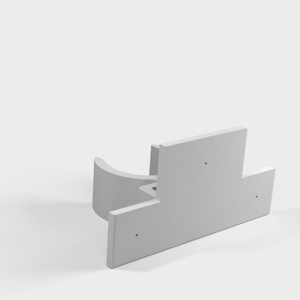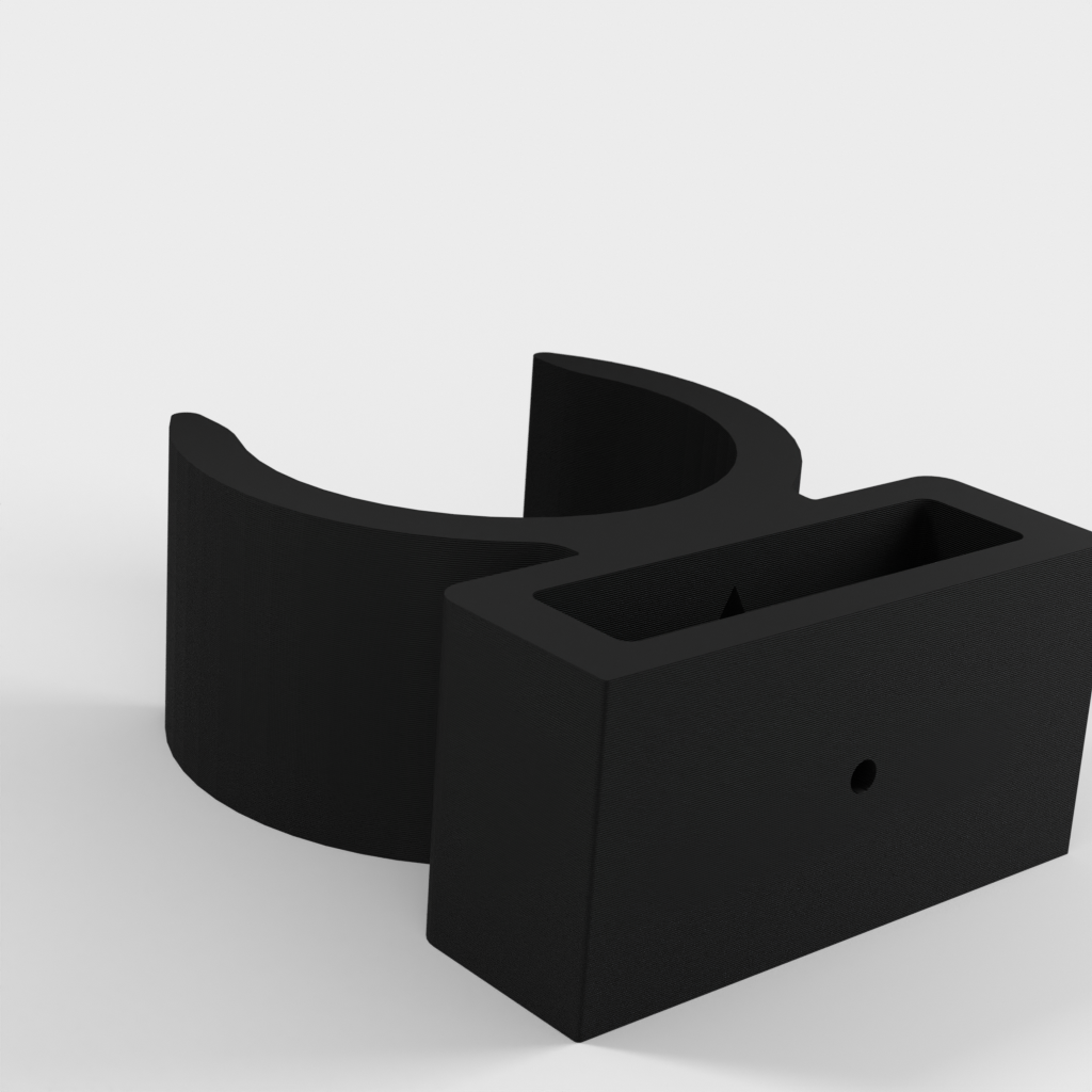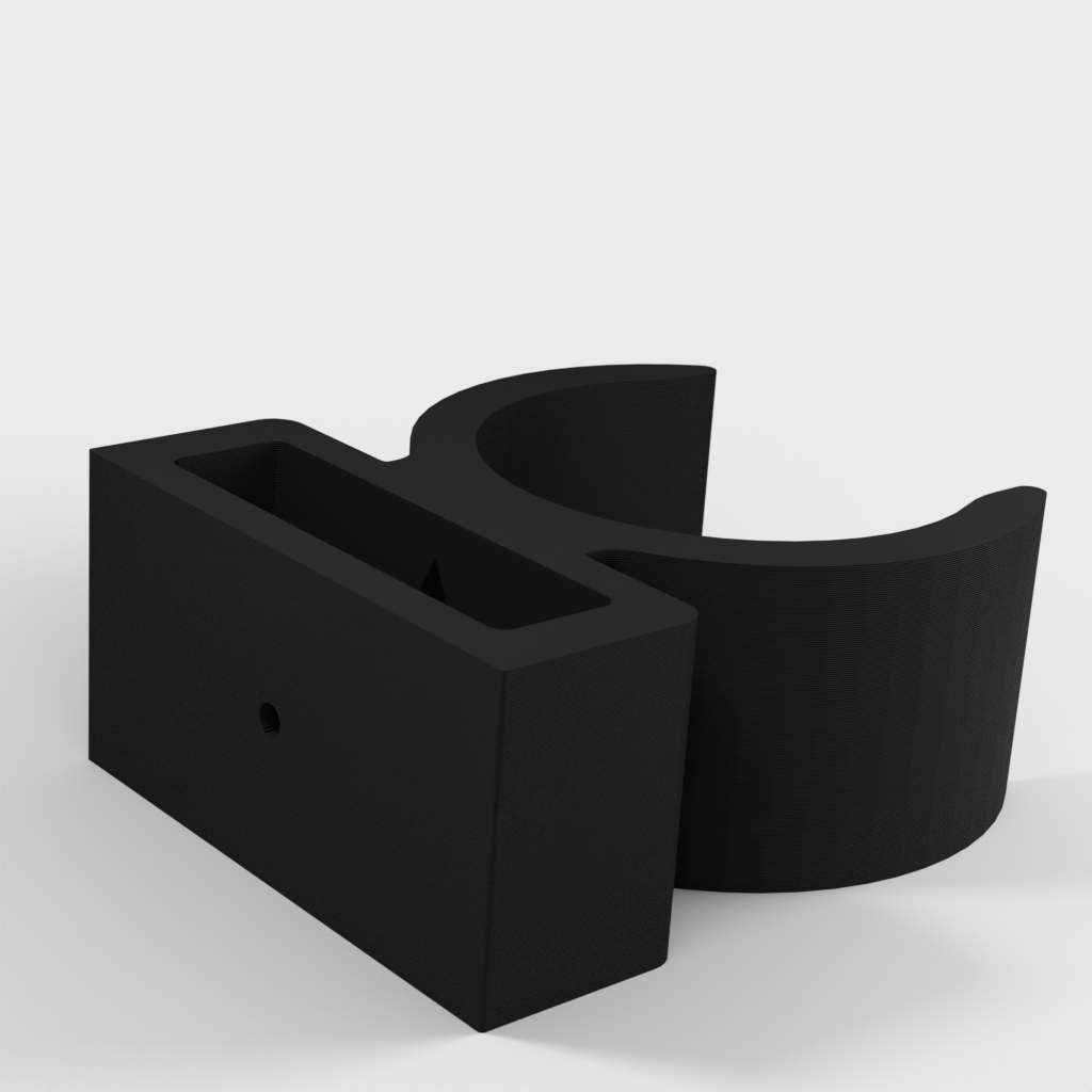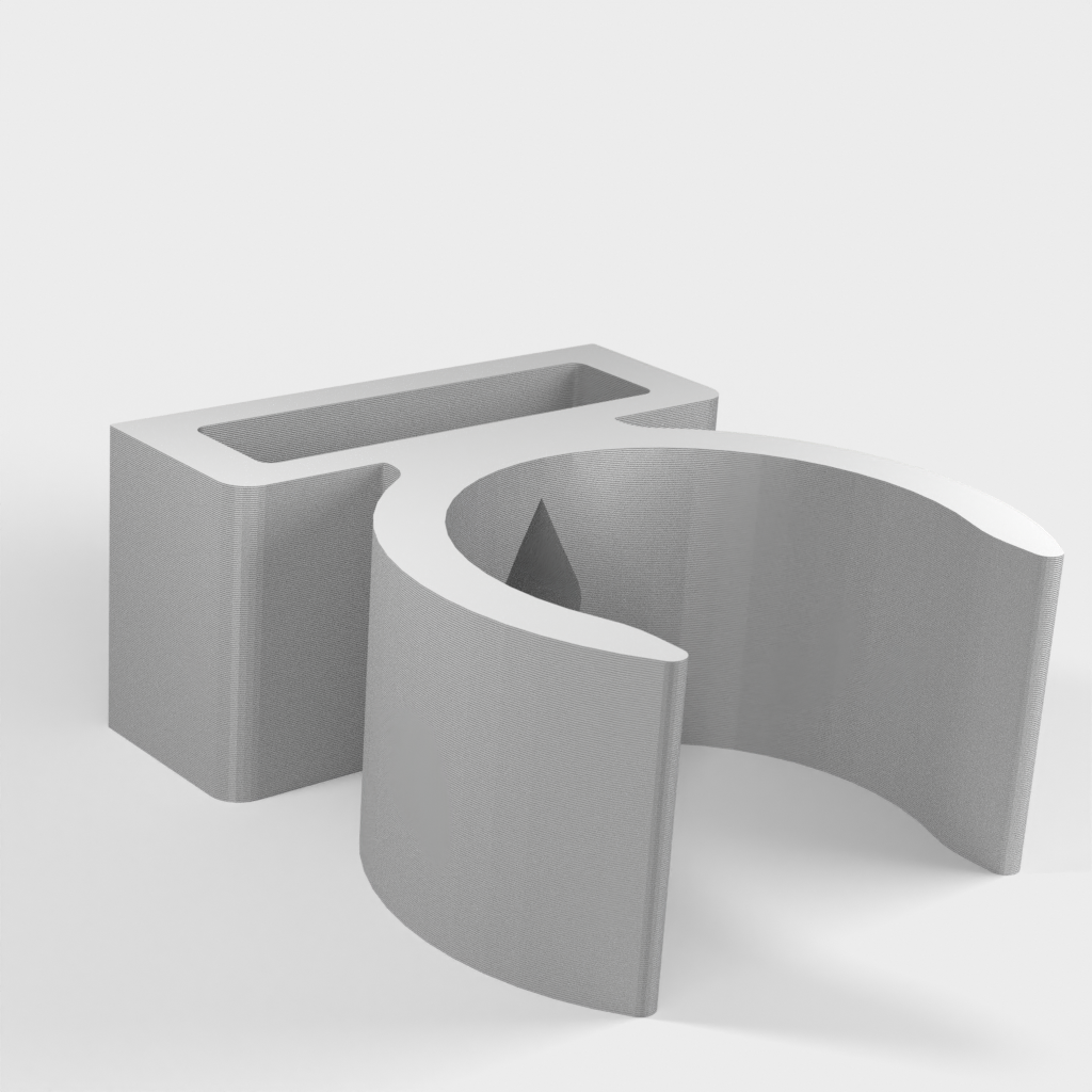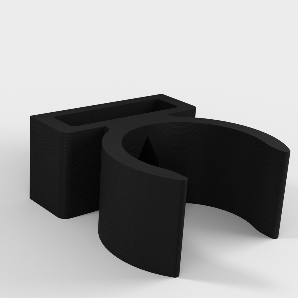 Uchwyt do rury odkurzacza ETA Stellar. Dolna część podpiera części rury w kształcie litery T i zaleca się przymocowanie jej za pomocą śrub, ponieważ przenosi ona większość ciężaru. Górna część jest przeznaczona do rur o średnicy 32 mm, ale można ją również używać do części o średnicy 35 mm bez żadnych problemów. Część tę można przymocować za pomocą śruby lub taśmy dwustronnej.