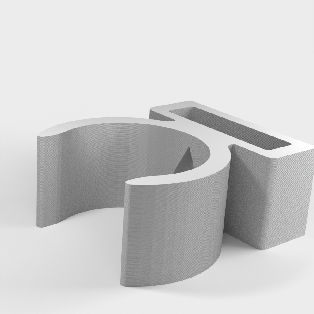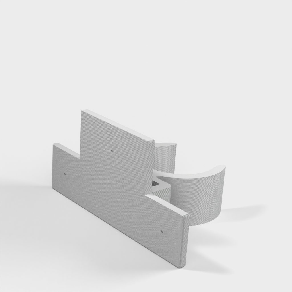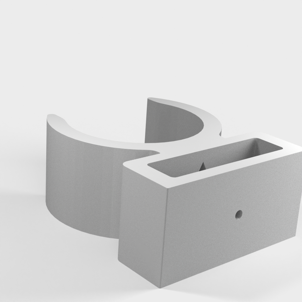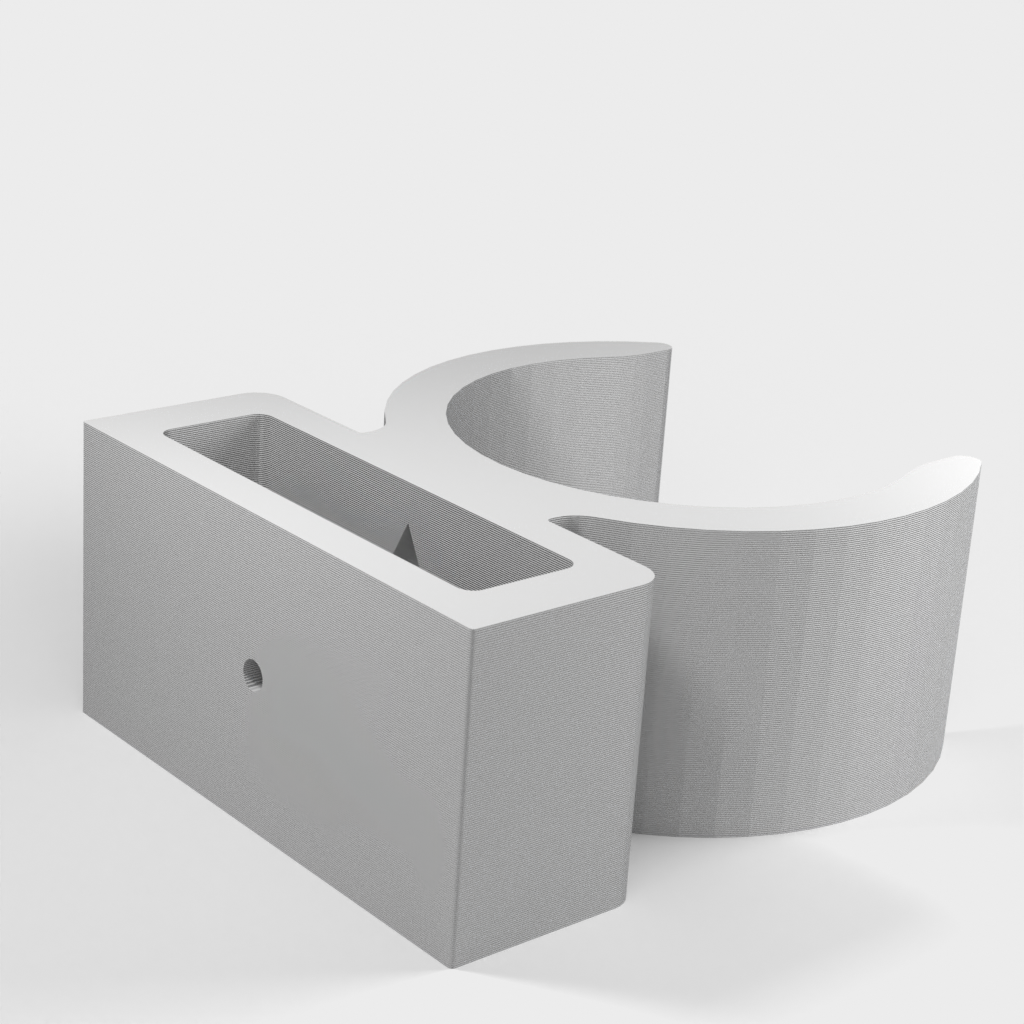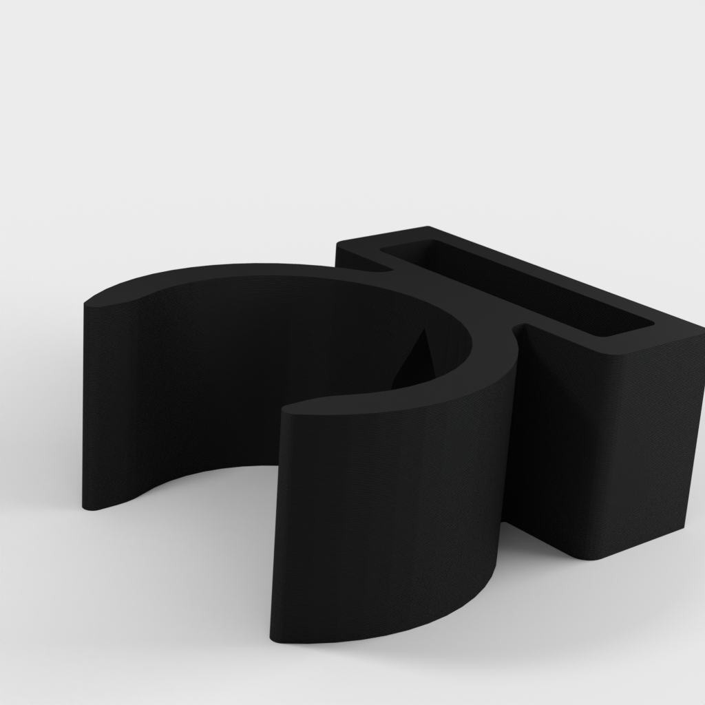 Uchwyt do rury odkurzacza ETA Stellar. Dolna część podpiera części rury w kształcie litery T i zaleca się przymocowanie jej za pomocą śrub, ponieważ przenosi ona większość ciężaru. Górna część jest przeznaczona do rur o średnicy 32 mm, ale można ją również używać do części o średnicy 35 mm bez żadnych problemów. Część tę można przymocować za pomocą śruby lub taśmy dwustronnej.