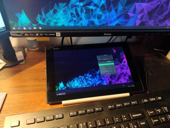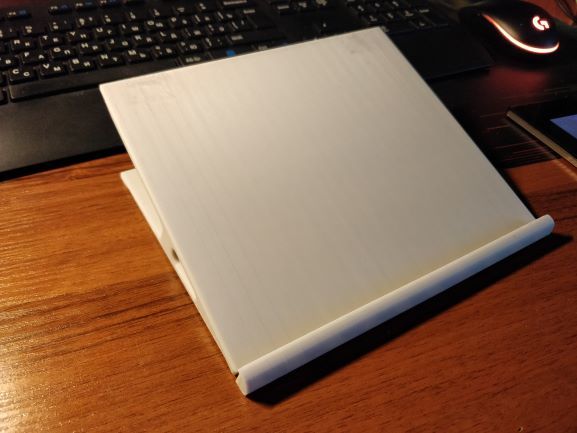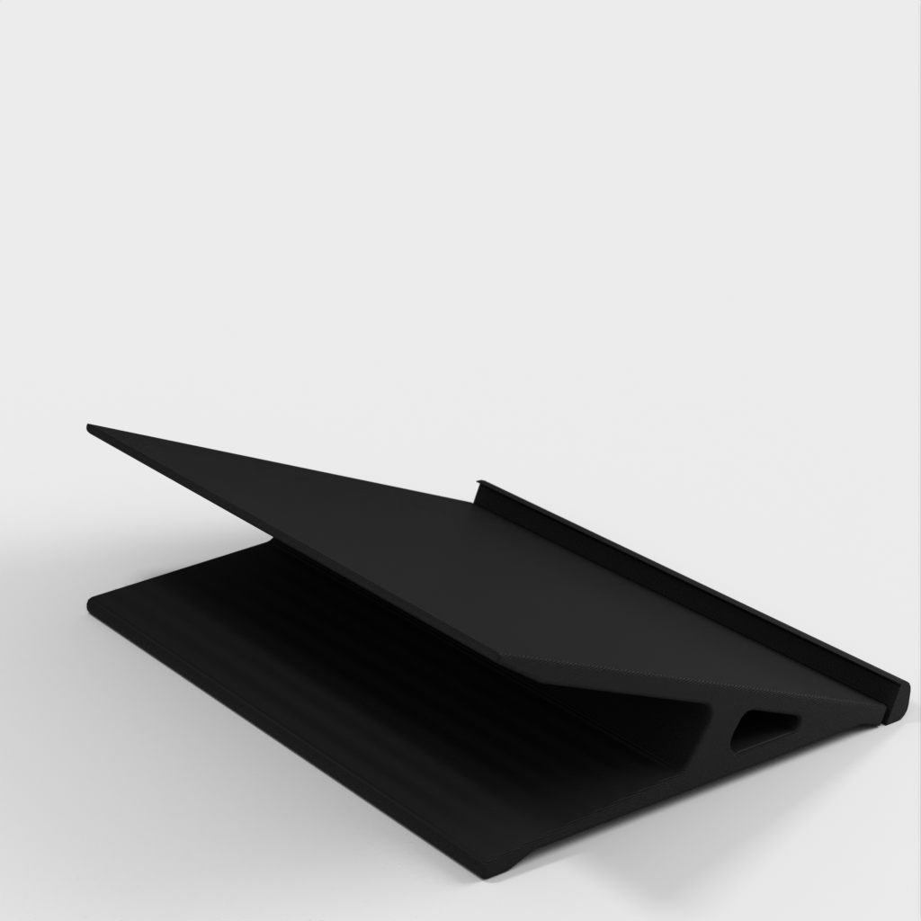 Jest to uchwyt do 10-calowego tabletu Sony Tablet Z. Uchwyt został zaprojektowany do działania jako stały ekran dotykowy na domowej stacji roboczej za pośrednictwem aplikacji Spacedesk (https://spacedesk.net). Tablet jest nachylony pod kątem 20 stopni w stosunku do stołu, aby zmniejszyć ruch oczu podczas pisania na klawiaturze i czytania z ekranu (np. PDF).