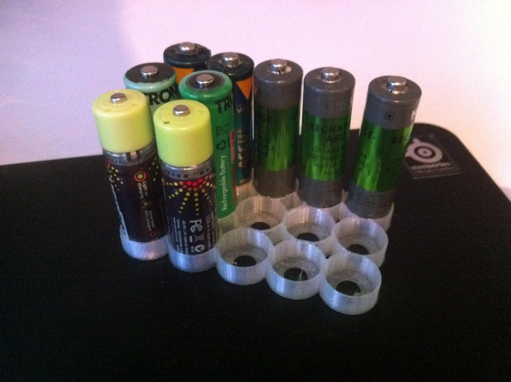 Jest to prosty uchwyt na baterie AA. Można go zmniejszyć do 0,725, aby pasował do baterii AAA. Uchwyt pomaga zorganizować i przechowywać baterie w efektywny sposób, dzięki czemu są one zawsze gotowe do użycia.
