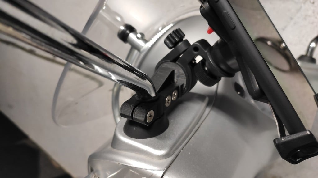 Ten adapter uchwytu na telefon został zaprojektowany, aby bezpiecznie przymocować smartfon do skutera Vespa GTS, w tym modeli takich jak GTS 250. Można go wygodnie zamontować na podstawie lusterka (14,5 mm) bez konieczności demontażu samego lusterka podczas instalacji, co sprawia, że proces jest szybki i prosty. Aby zapewnić stabilny i łatwy do odłączenia chwyt urządzenia, między adapterem a uchwytem lusterka można umieścić gumową przekładkę, co pomaga zminimalizować wibracje podczas jazdy.