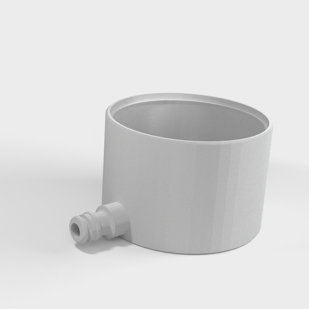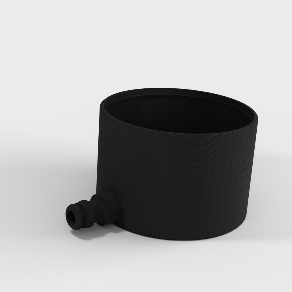 Ten zestaw zawiera zbieracz wody deszczowej i łącznik rury spustowej/przekierowania wody deszczowej do podłączenia beczki na deszczówkę do różnych węży. Łącznik ma dwa adaptery, które umożliwiają podłączenie węży o różnych rozmiarach. Jeden adapter jest przeznaczony do standardowych węży ogrodowych, a drugi adapter jest przeznaczony do większych węży (27,5 mm). Większy adapter węża wymaga większego wycięcia w dnie, dlatego nowy element dolny jest również dołączony do zestawu.
