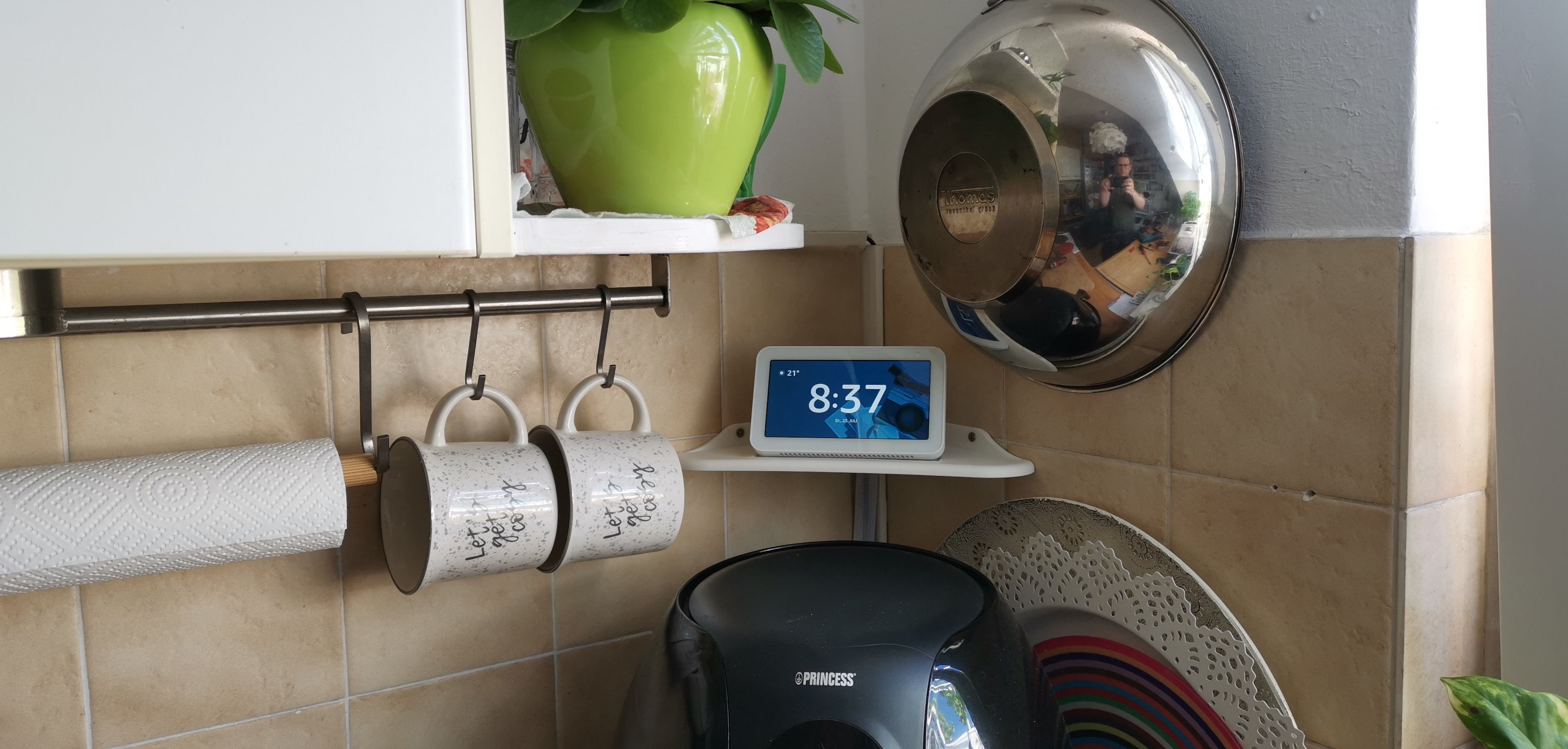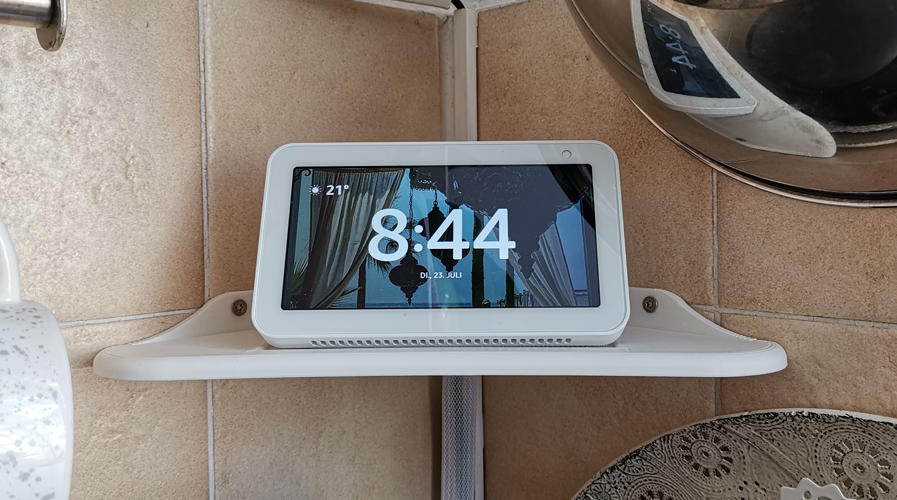 Oto półka/uchwyt Amazon Echo Show 5 zaprojektowany tak, aby idealnie pasował do rogu pokoju. Półka ma miejsce na dwa kable (zasilający i audio) i oferuje inteligentny i stylowy sposób na zabezpieczenie Echo Show 5, optymalizując przestrzeń i utrzymując porządek w kablach. Ma nawet małe wycięcie na trzeci kabel, jeśli zajdzie taka potrzeba.
