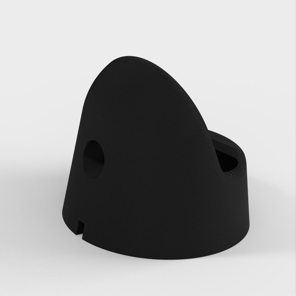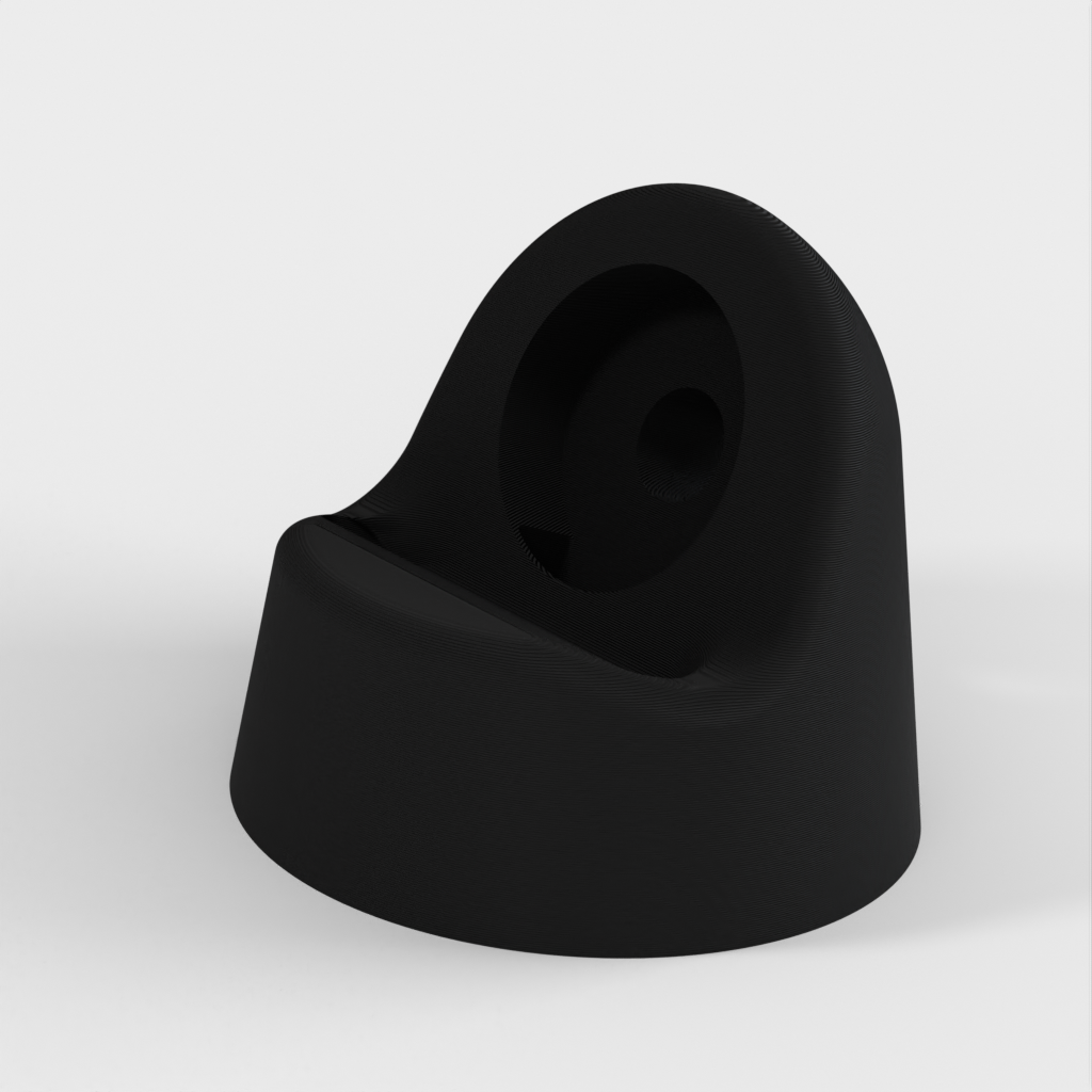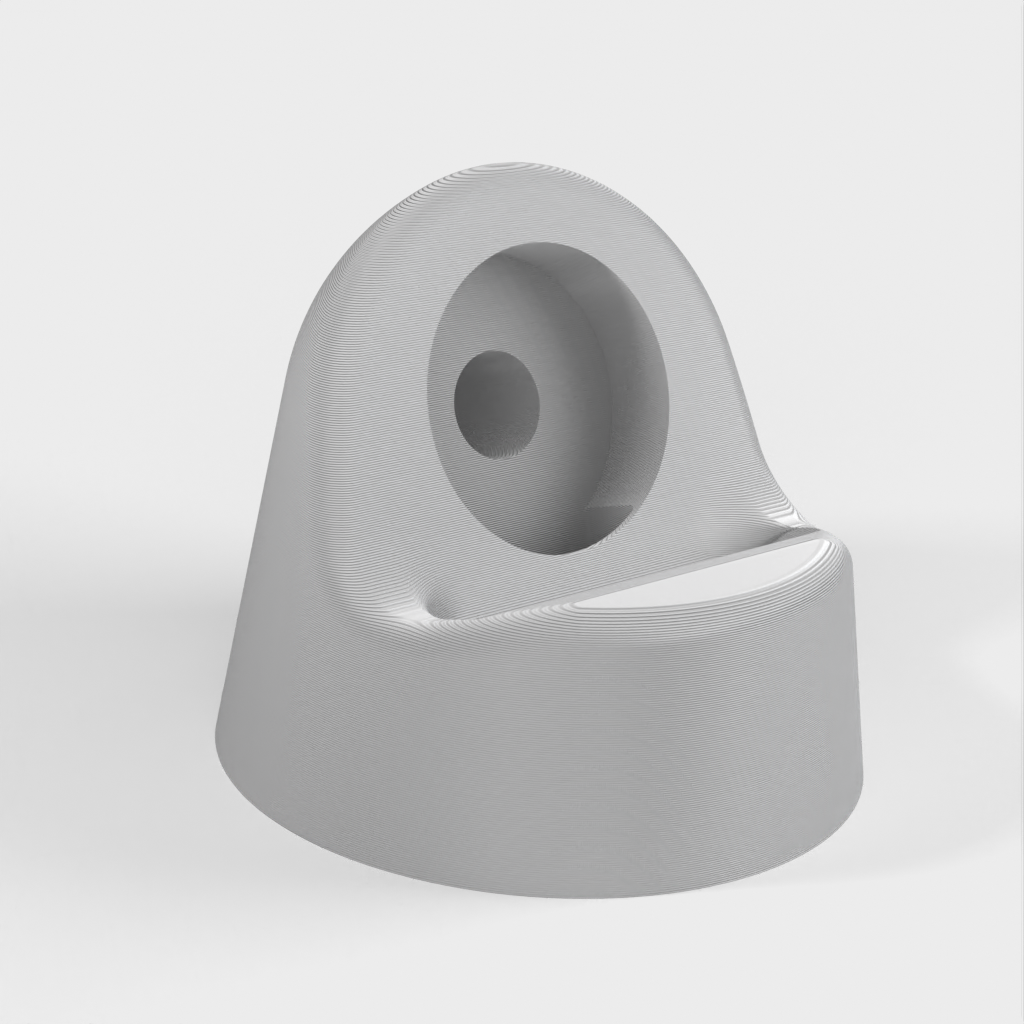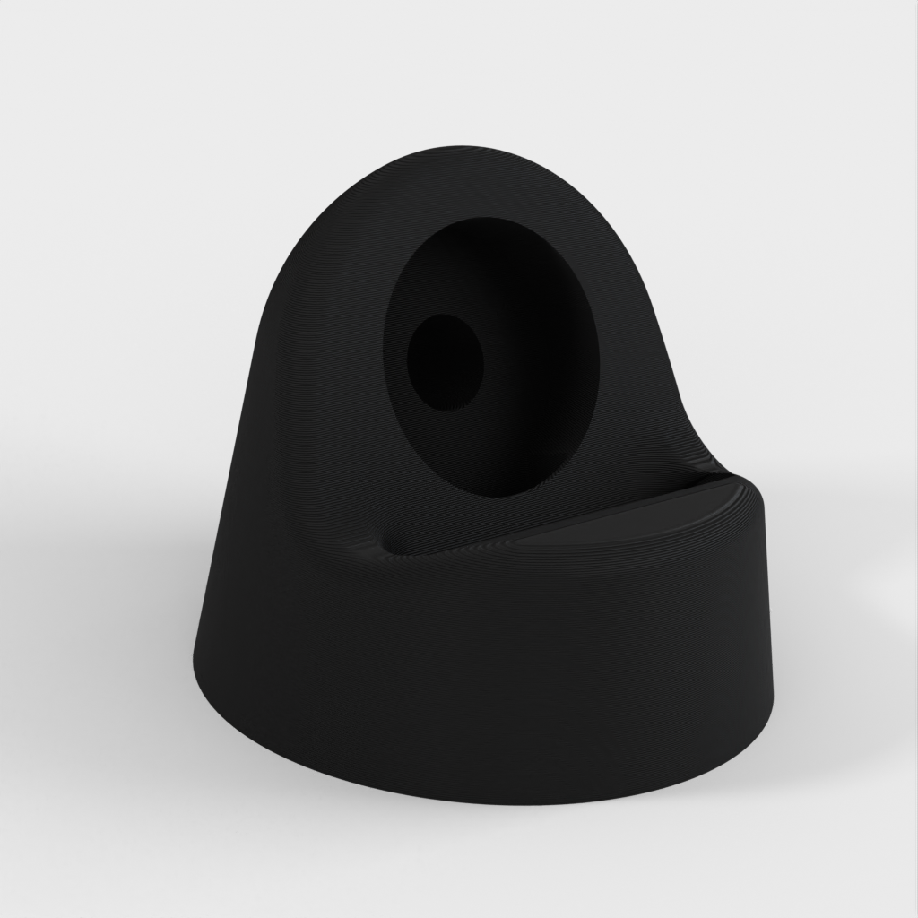 Jest to podstawka do zegarka Apple Watch zaprojektowana w celu ukrycia kabla ładującego, aby uzyskać bardziej opływowy wygląd. Stojak jest podzielony na dwie części - górną i dolną - z antypoślizgowym spodem wykonanym z elastycznego materiału filamentowego (Ninjaflex, TPU), aby zapobiec ślizganiu się na gładkich powierzchniach. Obie części są połączone trzema śrubami M3 x 6 mm. Inteligentne rozwiązanie do ładowania zegarka Apple Watch.