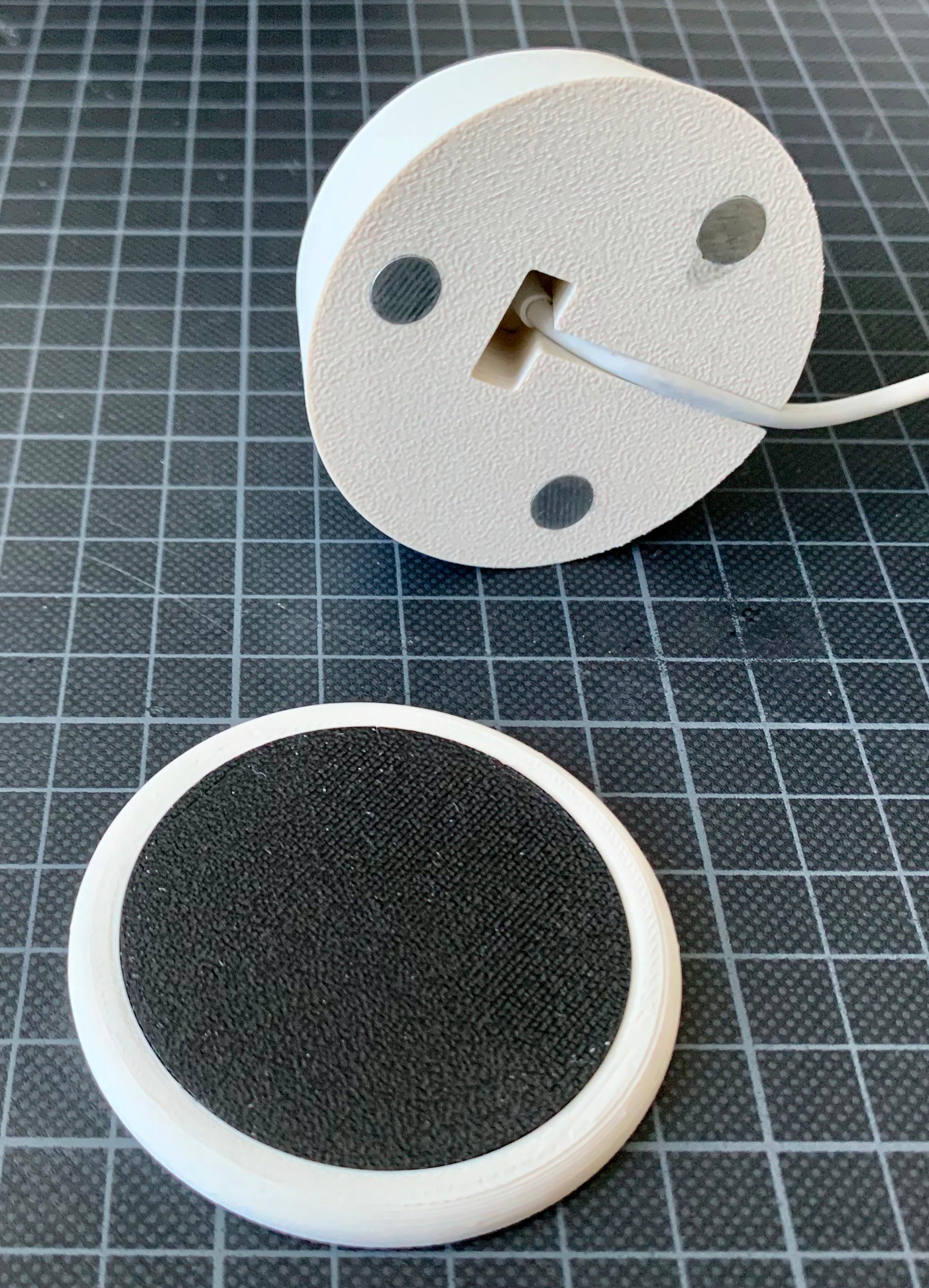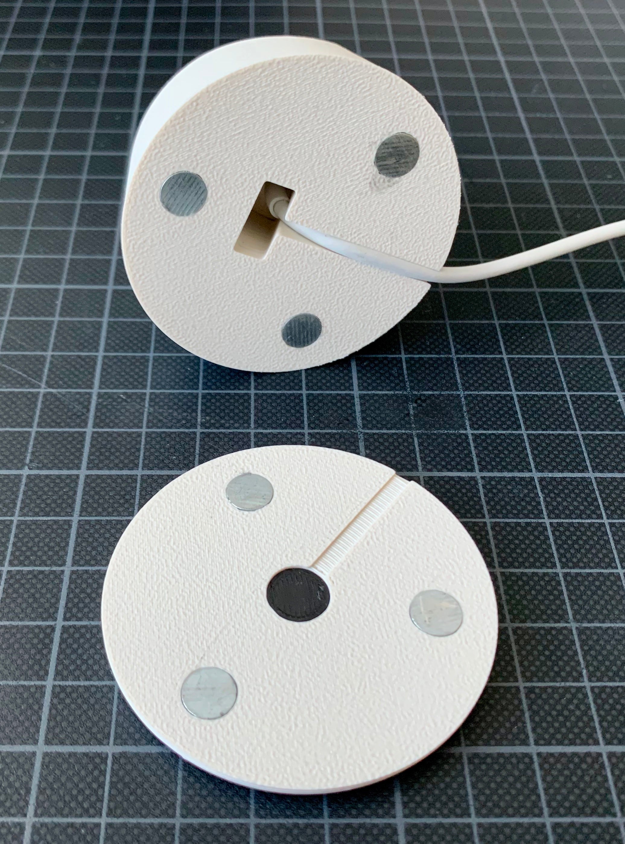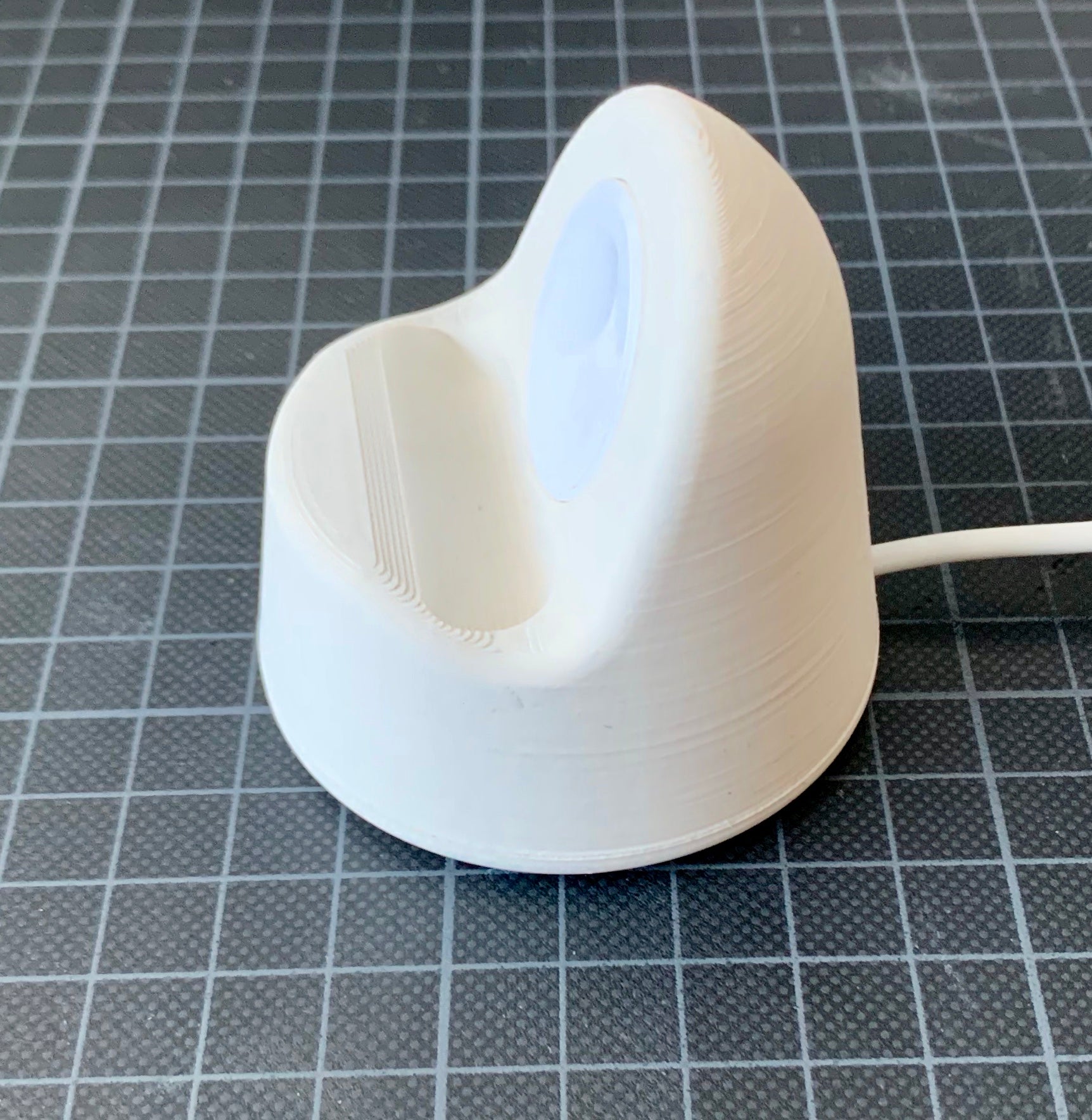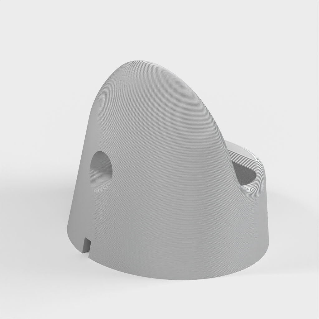 Jest to podstawka do zegarka Apple Watch zaprojektowana w celu ukrycia kabla ładującego, aby uzyskać bardziej opływowy wygląd. Stojak jest podzielony na dwie części - górną i dolną - z antypoślizgowym spodem wykonanym z elastycznego materiału filamentowego (Ninjaflex, TPU), aby zapobiec ślizganiu się na gładkich powierzchniach. Obie części są połączone trzema śrubami M3 x 6 mm. Inteligentne rozwiązanie do ładowania zegarka Apple Watch.
