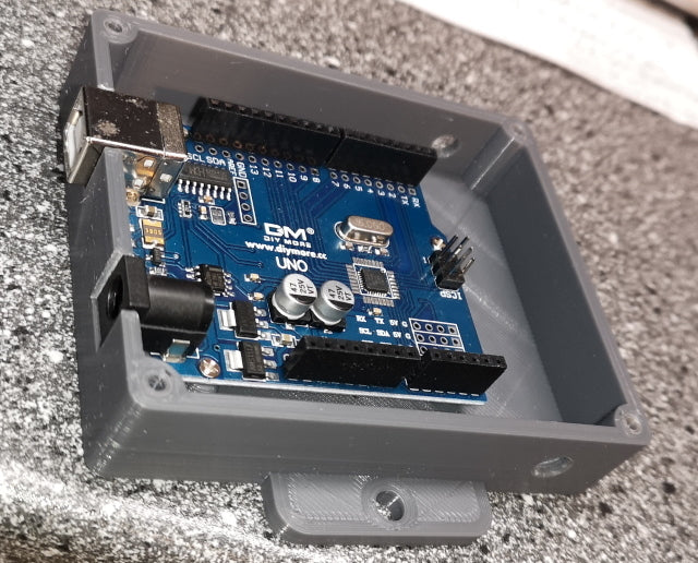 Wewnątrz obudowy jest dużo miejsca na przewody i inne małe przedmioty. Użyj małych wkrętów samogwintujących do arduino i pokrywy.