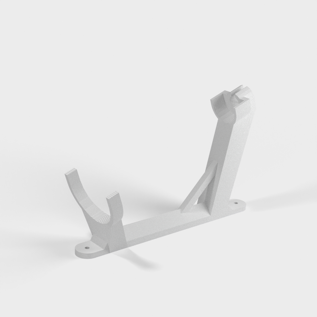 Jest to prosty uchwyt ścienny, przeznaczony do narzędzi obrotowych Bosch GRO. Może pasować również do podobnych narzędzi, ale dla pewności należy porównać rozmiar swojego narzędzia z rozmiarem Bosch GRO. Wszystkie ważne pomiary znajdują się na obrazku poniżej.