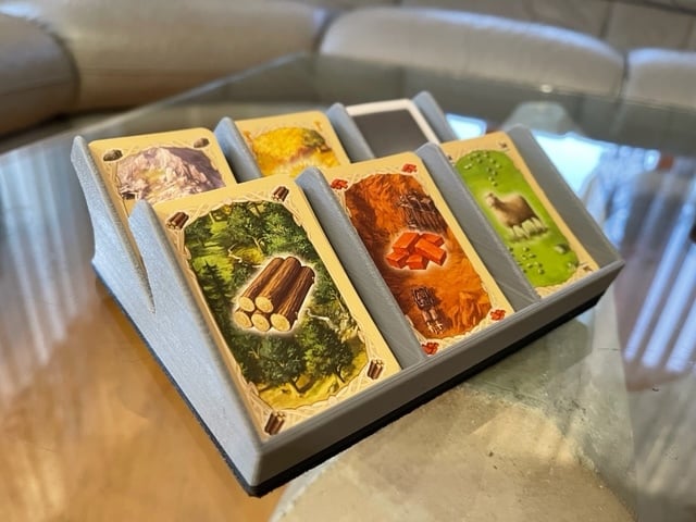 Ten uchwyt na karty został stworzony, aby poprawić wrażenia z gry w Catan. Został zaprojektowany specjalnie do przechowywania kart o wymiarach 68x44 mm, dzięki czemu idealnie nadaje się do wszystkich kart Catan. Dzięki temu uchwytowi na karty możesz łatwo śledzić swoje karty zasobów i rozwoju podczas gry, co minimalizuje bałagan na stole i zapewnia łatwy dostęp do wszystkich kart.