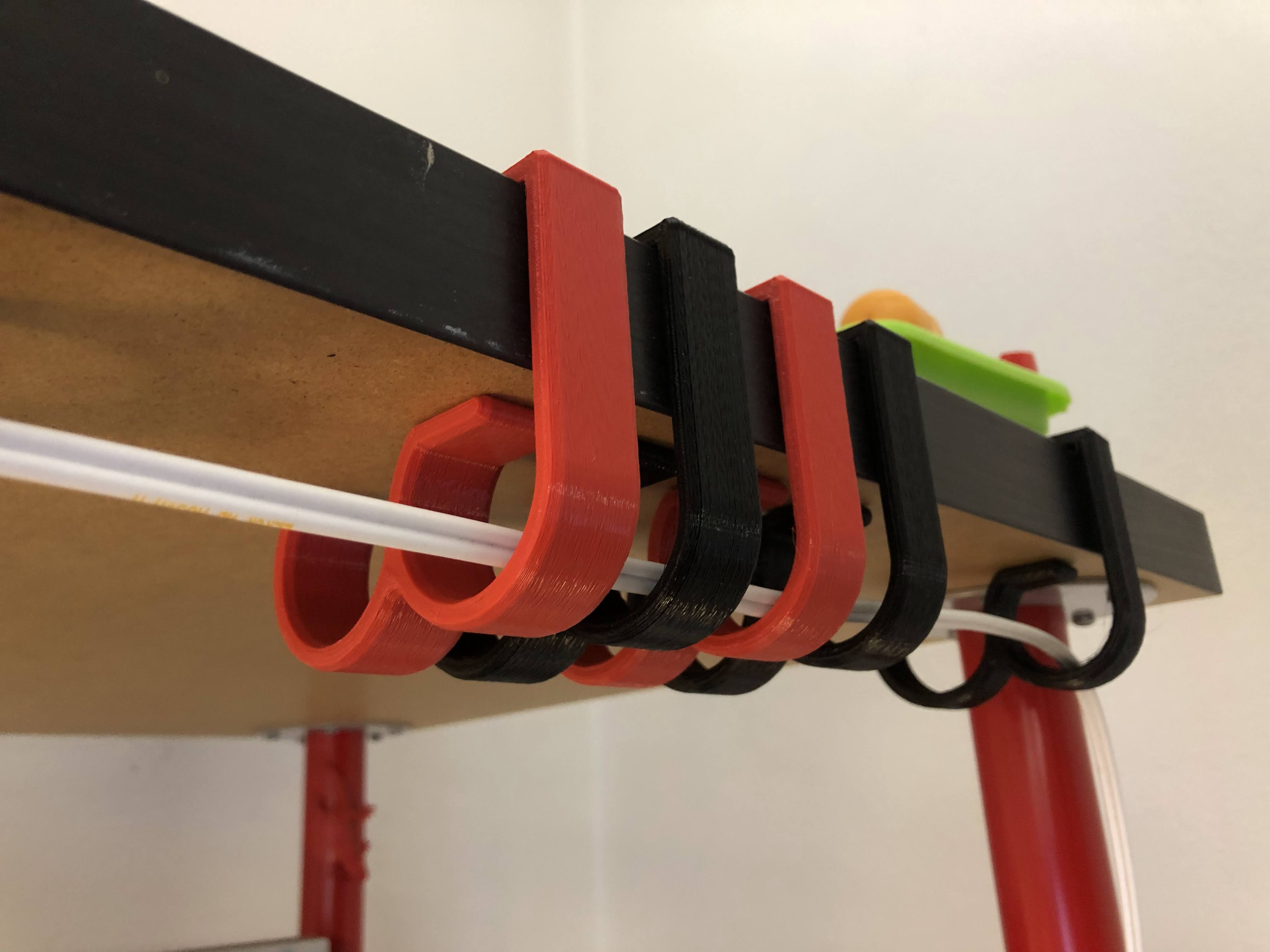 Zestaw modeli ułatwiających zarządzanie kablami. Klipsy te są przeznaczone do mocowania do biurek lub stołów. Klipsy zostały pierwotnie wykonane dla blatów roboczych Ikea Linnmon, ale są w pełni kompatybilne z blatami Lagkapten i Målvakt, a także innymi blatami roboczymi lub biurkami o grubości 50 mm (~ 2 '). Jeden model ma zamknięty pierścień po zamontowaniu, podczas gdy drugi model ma dodatkowy częściowo otwarty pierścień, który ułatwia dodawanie lub usuwanie kabli w locie. Oba modele są dostępne w szerokościach 20 mm i 30 mm, ale inne szerokości można łatwo uzyskać, zmieniając rozmiar w programie do cięcia.