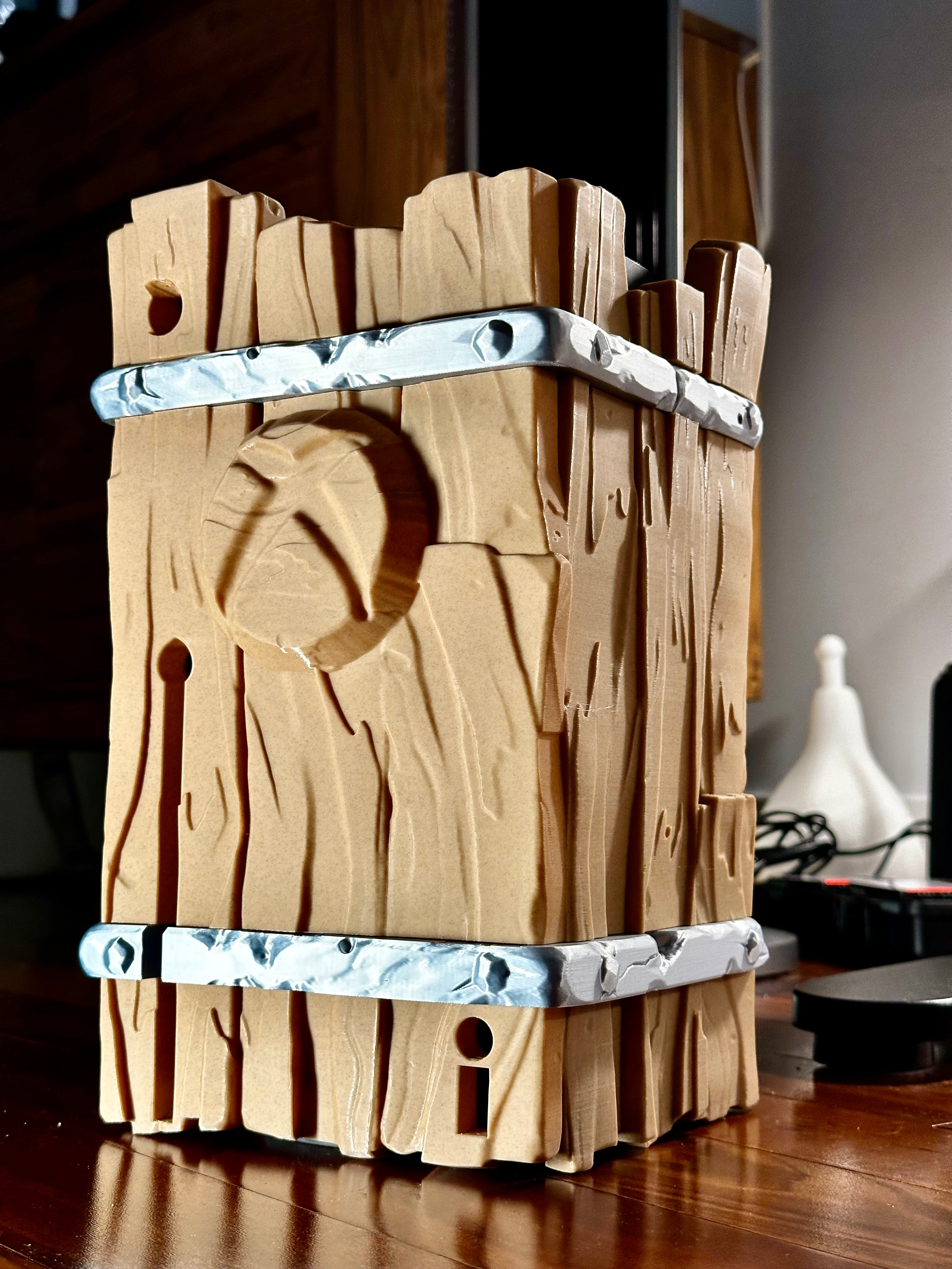 Ta dekoracja zamienia konsolę Xbox Series X/S w stylizowaną beczkę, idealną do aranżacji w klimacie fantasy. Dostępna w wersji pionowej i poziomej, zapewnia pełny dostęp do portów i wentylacji, utrzymując konsolę w chłodzie, a jednocześnie dodając wyjątkowego drewnianego wyglądu Twojemu stanowisku gamingowemu.