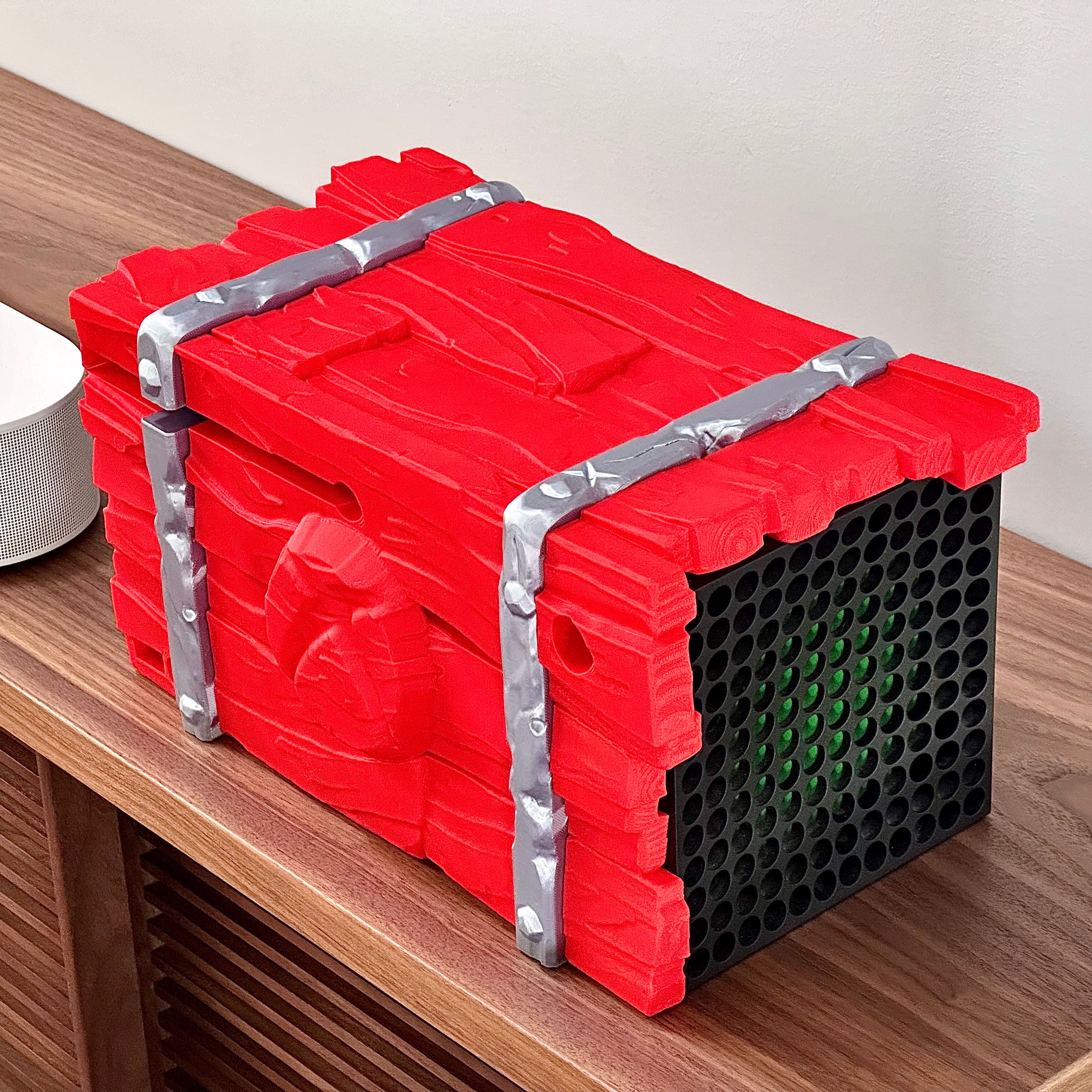 - Nadaje Twojemu Xbox Series X unikalny, fantazyjny wygląd stylizowanej drewnianej beczki lub skrzyni.