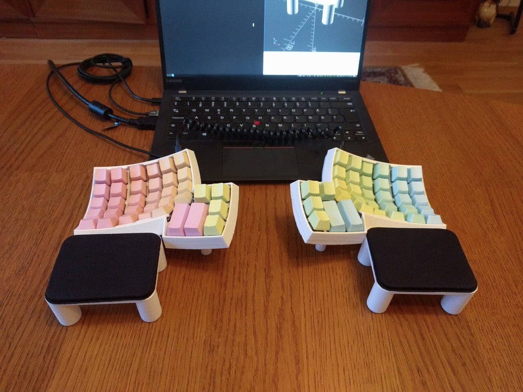 Aby zapewnić stabilne umieszczenie na biurku, podparcie nadgarstka jest wyposażone w małe wgłębienia pod nogami, przeznaczone do wkładania antypoślizgowych gumowych nóżek. Przyczynia się to do pewnego chwytu i zapobiega przesuwaniu się podczas użytkowania. Wymiary zostały opracowane z myślą o podkładkach pod nadgarstki Kinesis, co zapewnia sprawdzony kształt, ale projekt jest również elastyczny i można go dostosować do indywidualnych preferencji i potrzeb.