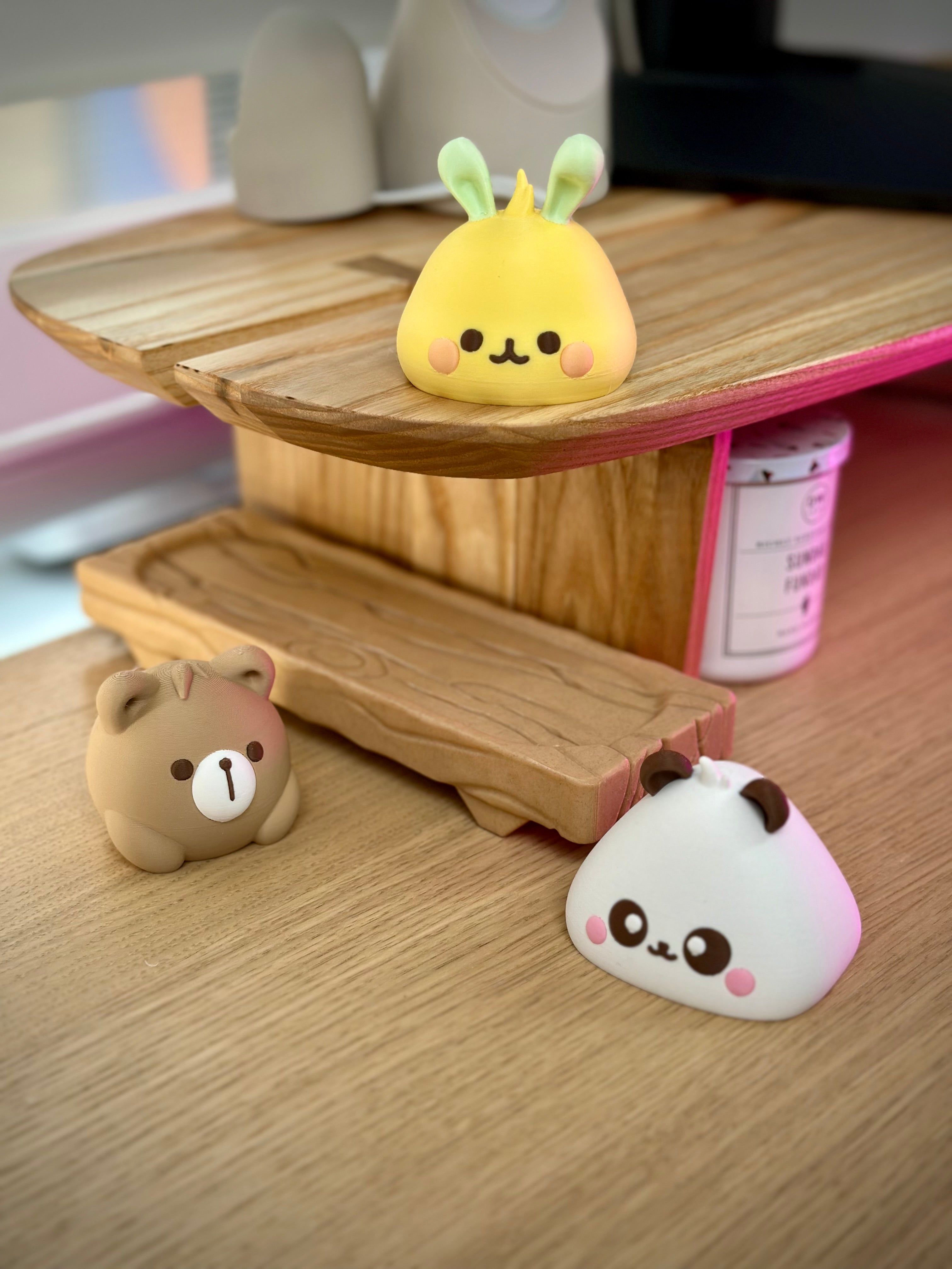 Kawaii Zwierzęce Figurki Bao na Drewnianym Bloku
