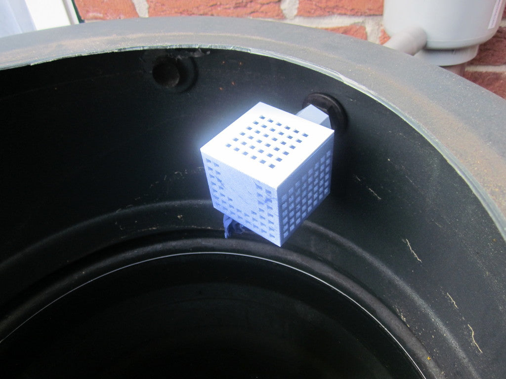 Filtr do wody deszczowej, przeznaczony do beczki z rurą wymagającą nakrętki M27. Filtr ma około 7 cm szerokości i 6,5 cm wysokości. Zaleca się regularne czyszczenie filtra, aby zapewnić optymalną filtrację.