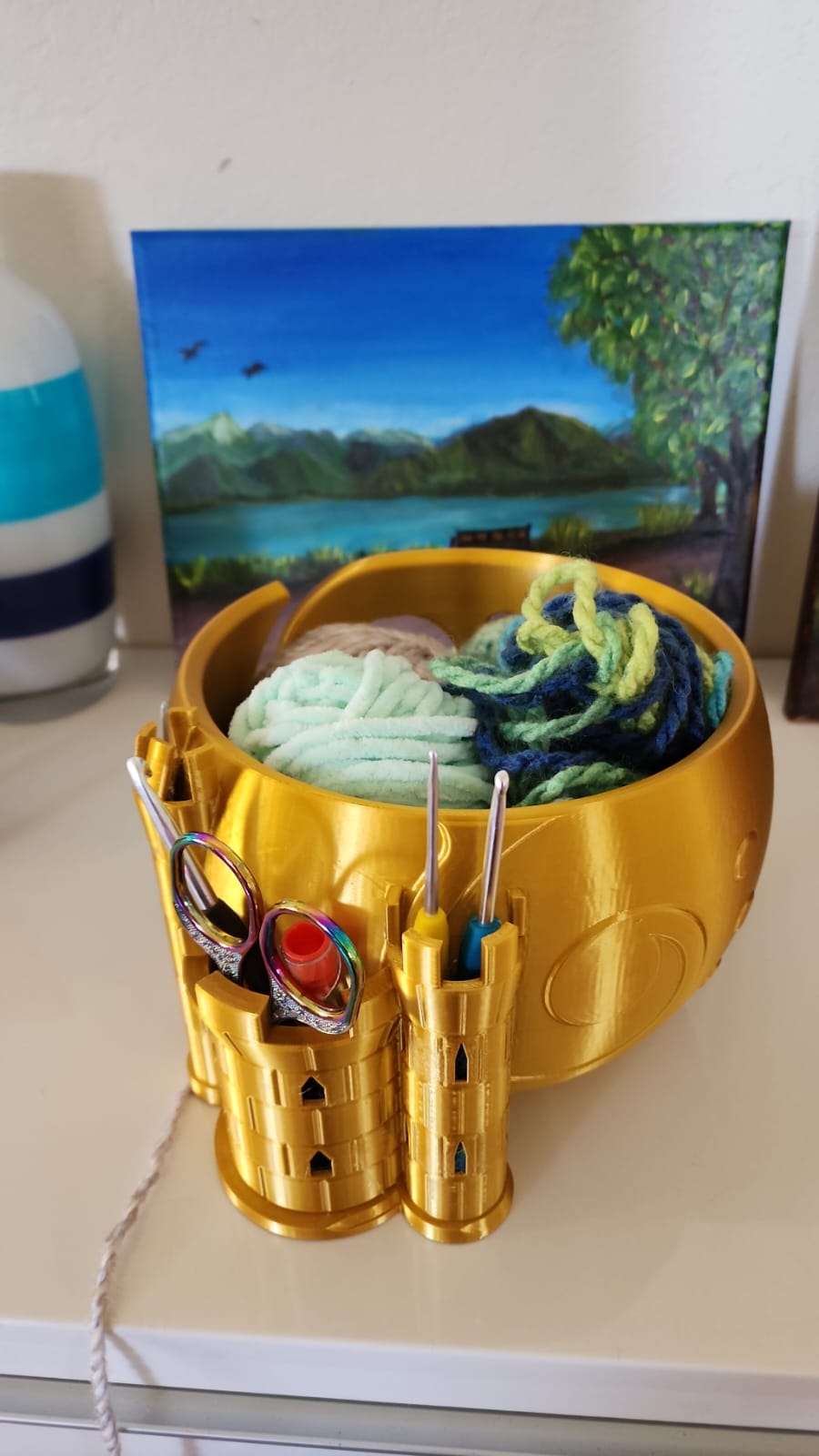 Miseczka na włóczkę w kształcie zamku to idealny dodatek do narzędzi każdego dziewiarza. Ta elegancka miseczka na włóczkę utrzymuje włóczkę na miejscu podczas pracy, zapobiegając jej wciąganiu lub tworzeniu się węzłów. Dzięki swojej solidności i ponadczasowemu wzornictwu z łatwością ozdobi każdy kącik do robótek, jednocześnie będąc funkcjonalnym. Jej starannie wykonane detale i solidna konstrukcja sprawiają, że jest to praktyczny wybór zarówno dla początkujących, jak i doświadczonych dziewiarzy. Niezależnie od tego, czy pracujesz nad złożonym projektem, czy po prostu robisz na drutach dla przyjemności, Yarn Bowl Castle zapewni Ci bezproblemowe wrażenia.