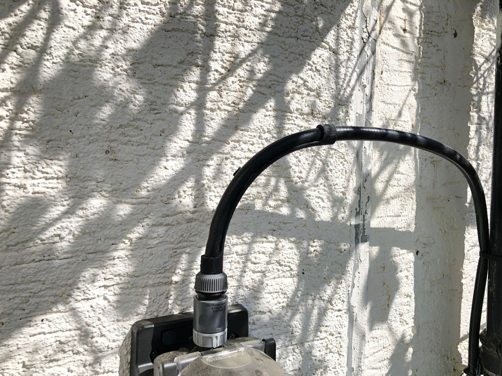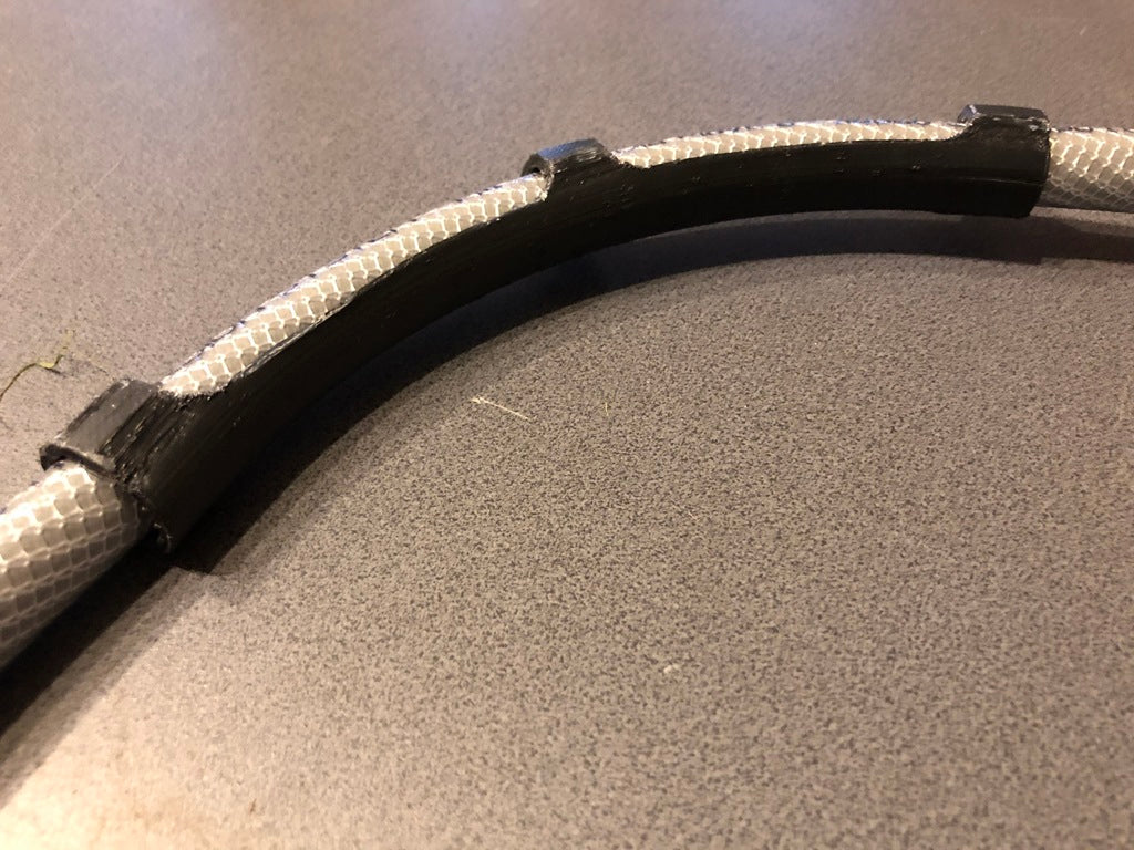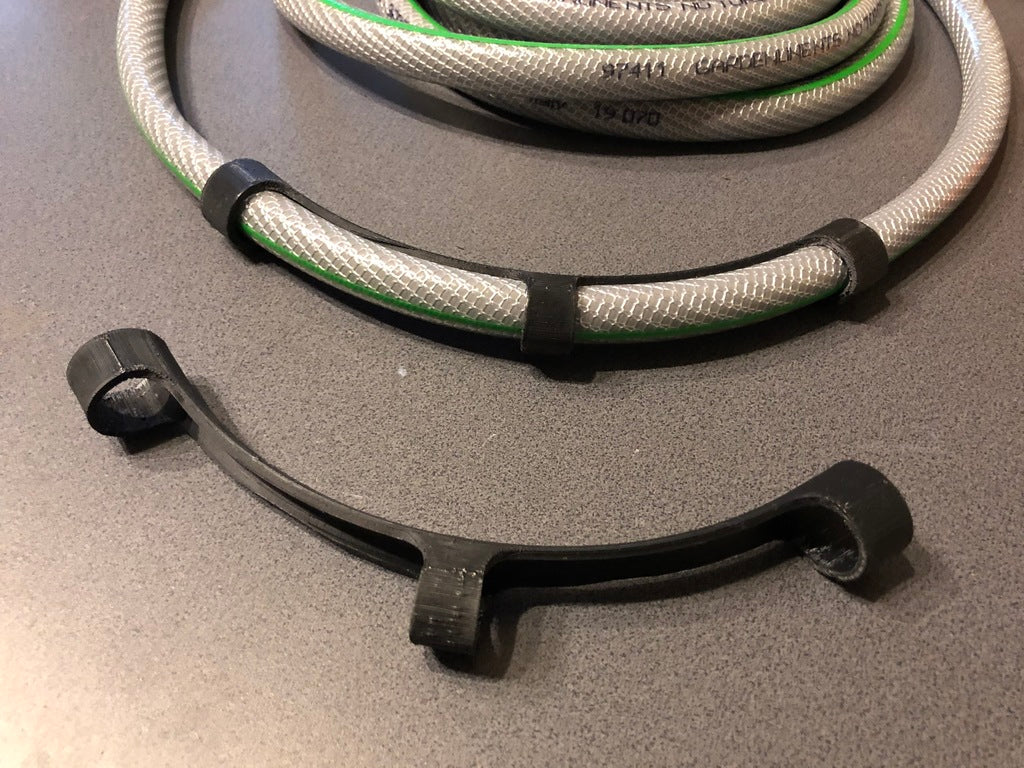 Jest to zabezpieczenie przed zagięciami węży ogrodowych, które stworzyłem, aby rozwiązać problem zbytniego zginania się na wężach leżących bez ciśnienia. To kolano znacznie zmniejsza zarówno ciśnienie wody, jak i żywotność węża. W tym rozwiązaniu wąż należy przełożyć przez trzy otwory o średnicy 20mm. Powinno to również pomóc przedłużyć żywotność węża.