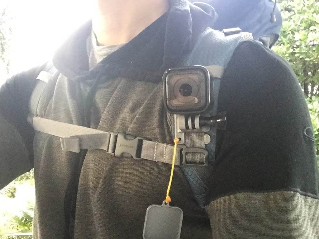 - Bezpieczny montaż GoPro Session na paskach plecaka.