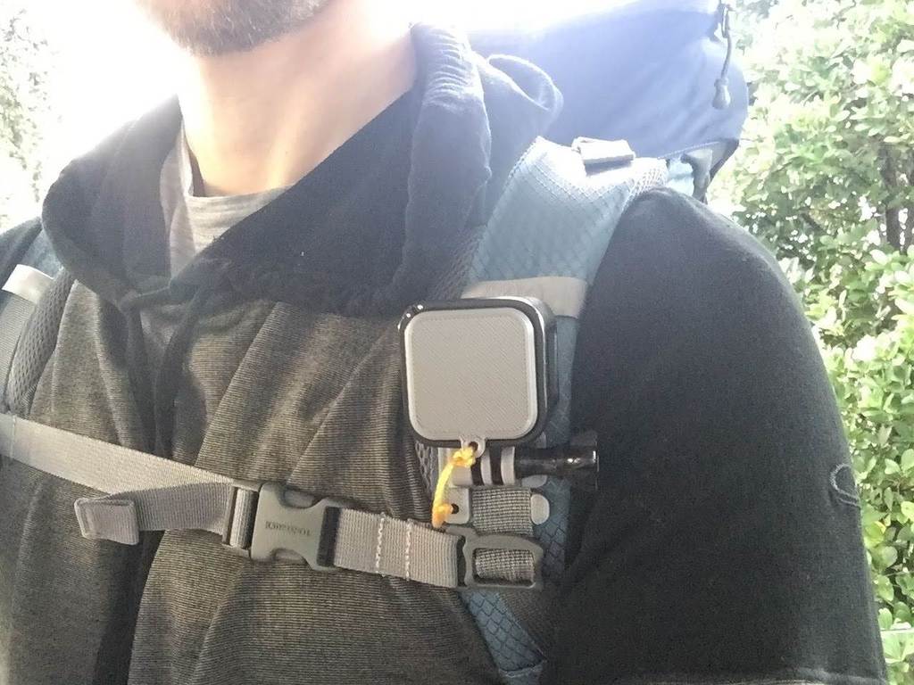Mocowanie GoPro Session do paska naramiennego plecaka z osłoną obiektywu