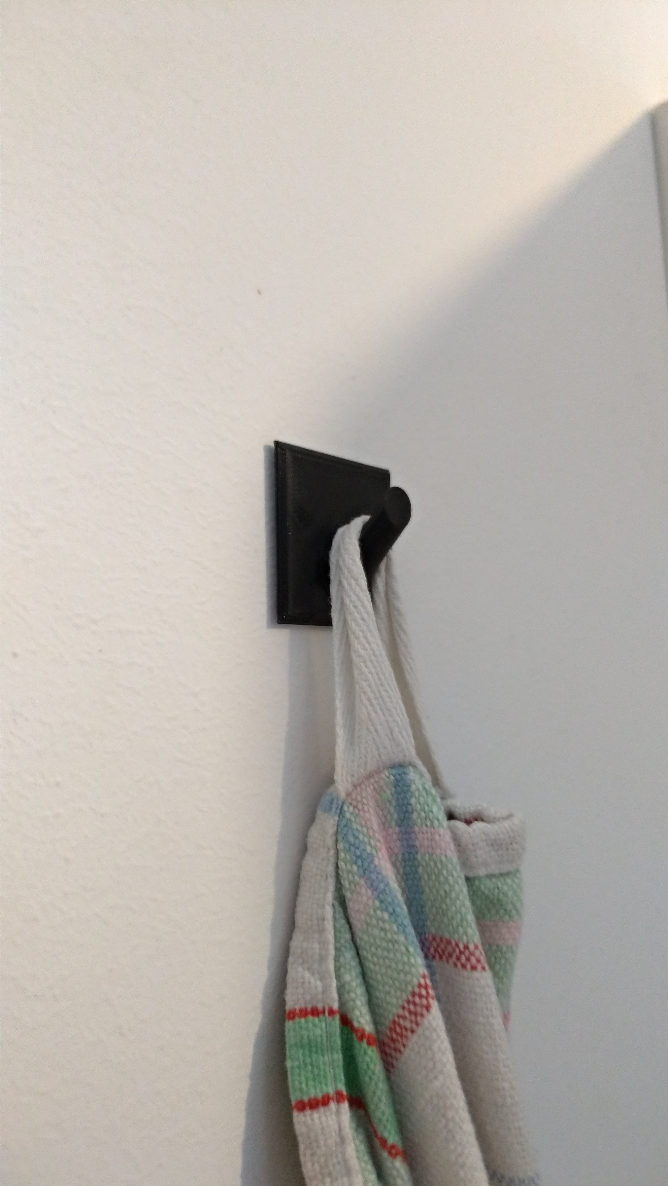 Hak ścienny przeznaczony do wieszania różnych przedmiotów na ścianie za pomocą taśmy montażowej. Może być drukowany w różnych rozmiarach, aby utrzymać wymaganą wagę. Standardowy rozmiar pasuje do standardowych ściereczek do naczyń. Zamontuj go na ścianie za pomocą mocnej taśmy montażowej.