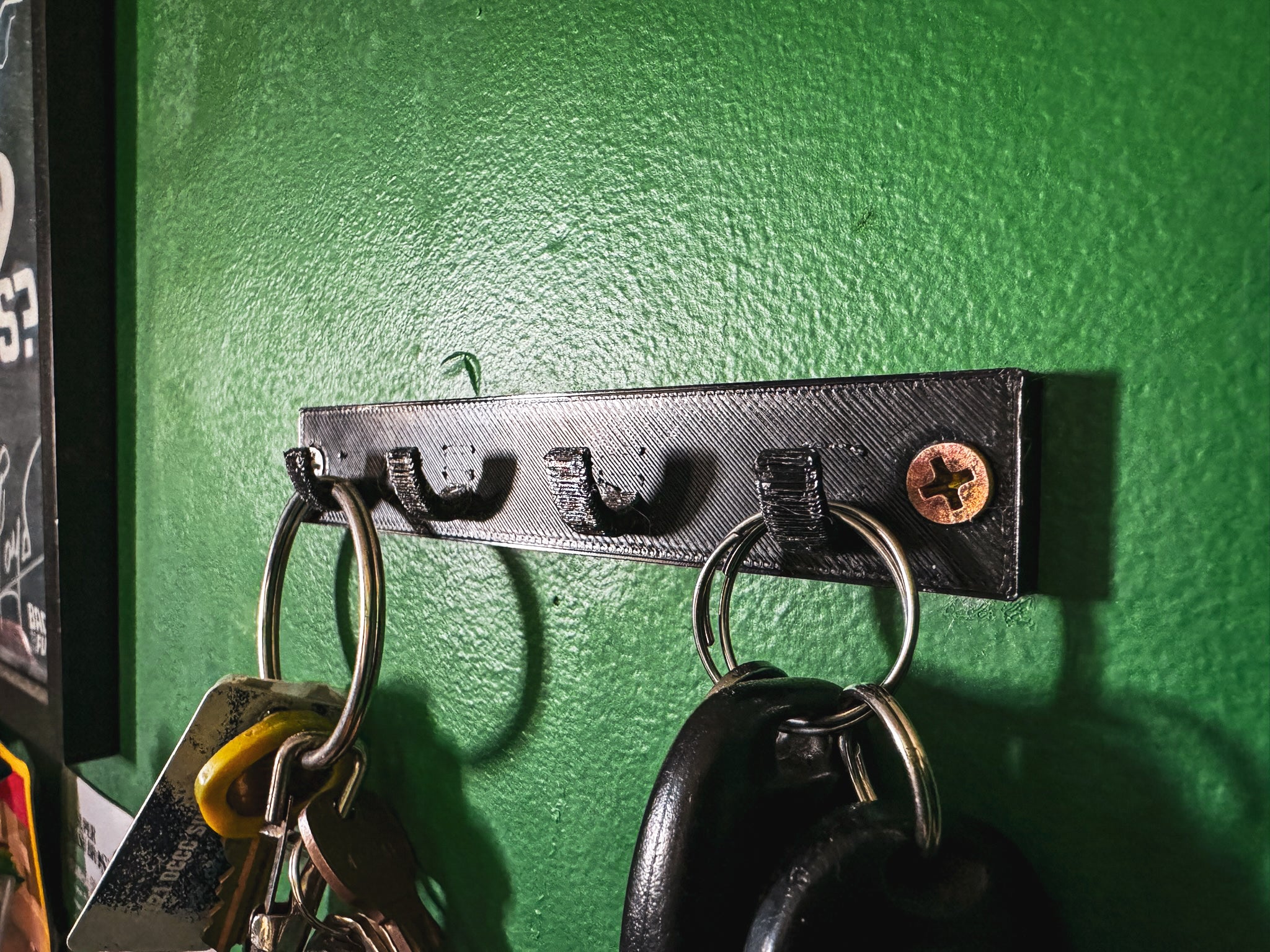 Dzięki czterem solidnym haczykom, wieszak na klucze oferuje wystarczająco dużo miejsca na pęki kluczy rodzinnych, kluczyki do samochodu, a nawet małe torby i akcesoria. Konstrukcja jest zoptymalizowana tak, aby haczyki były rozmieszczone w sposób umożliwiający pomieszczenie różnej wielkości breloczków, dzięki czemu jest to wszechstronny dodatek do każdego domu lub biura.