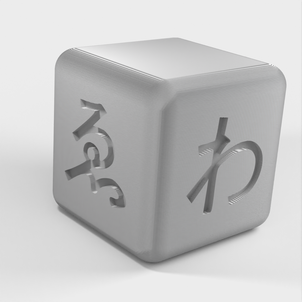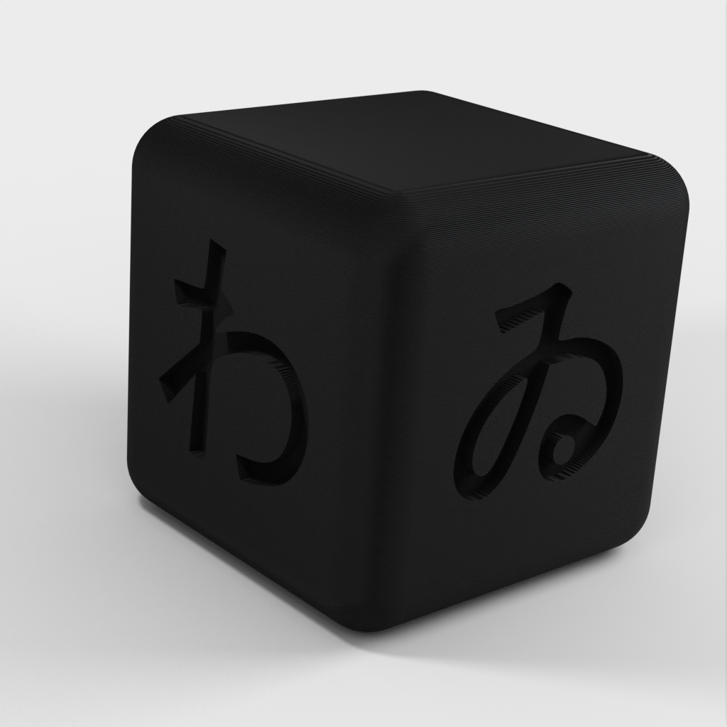 Są to kostki Hiragana, zabawka edukacyjna zaprojektowana, aby pomóc w nauce japońskiego alfabetu, hiragany. Kostki mają wymiary 2 cm x 2 cm x 2 cm i mogą być skalowane zgodnie z preferencjami. Większość z nich ma 5 boków z symbolem i płaski spód, dzięki czemu idealnie nadaje się jako sześcioboczna fiszka. Oprócz tego, że jest to zabawna mała gra, pomoże ci w podstawowym zrozumieniu języka japońskiego.