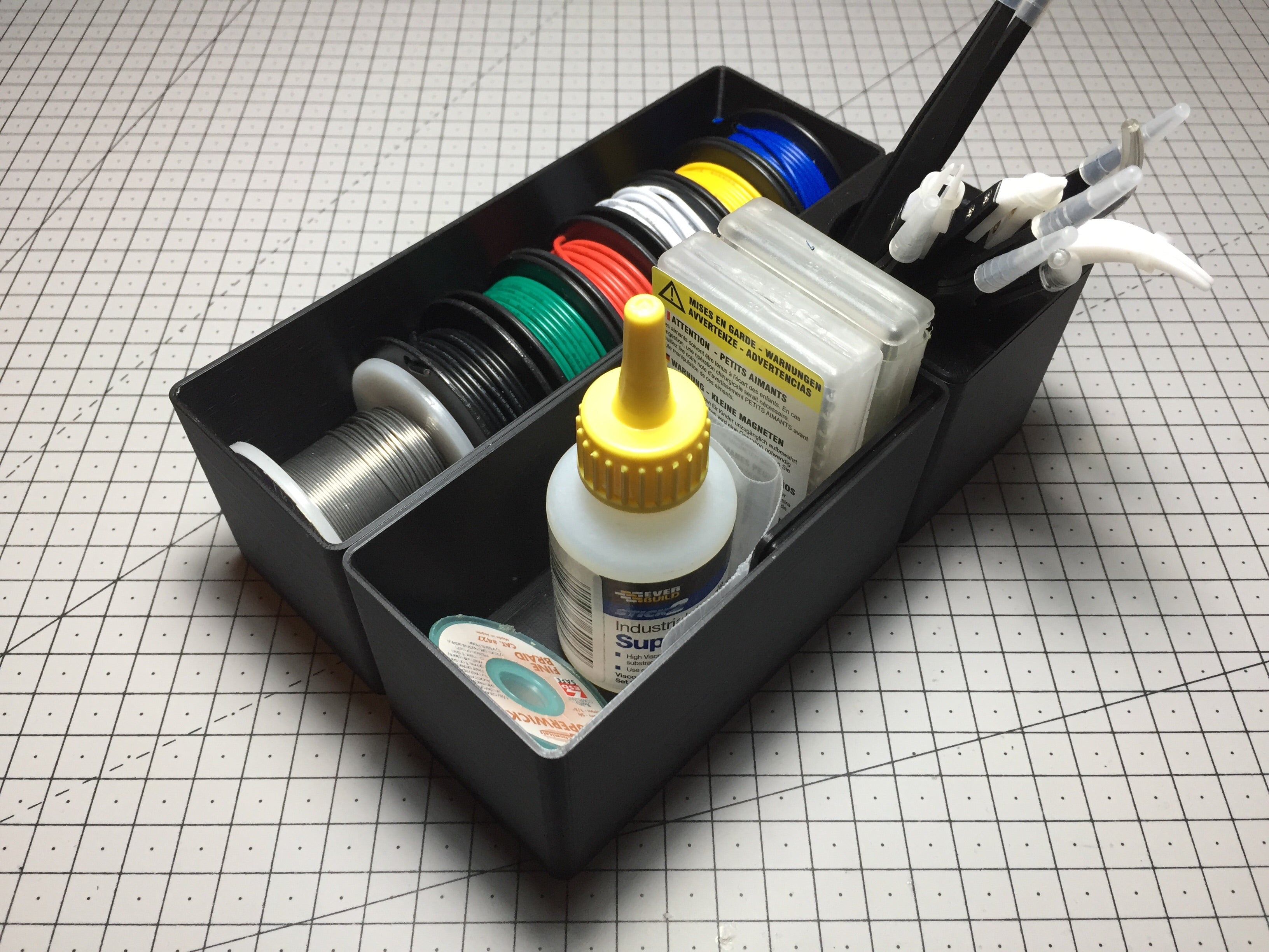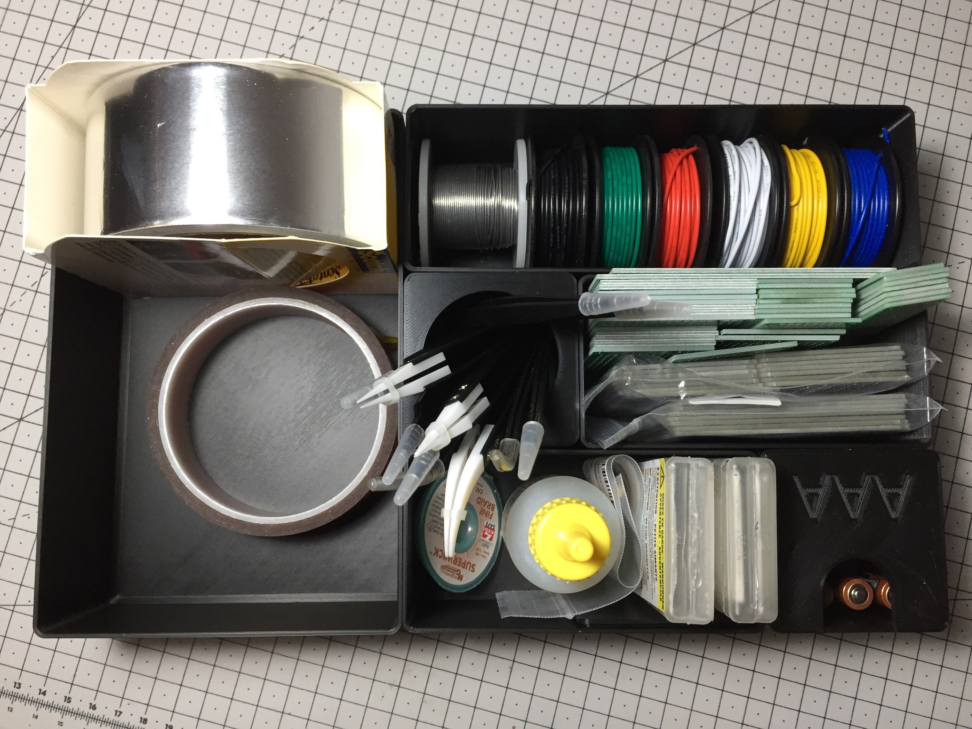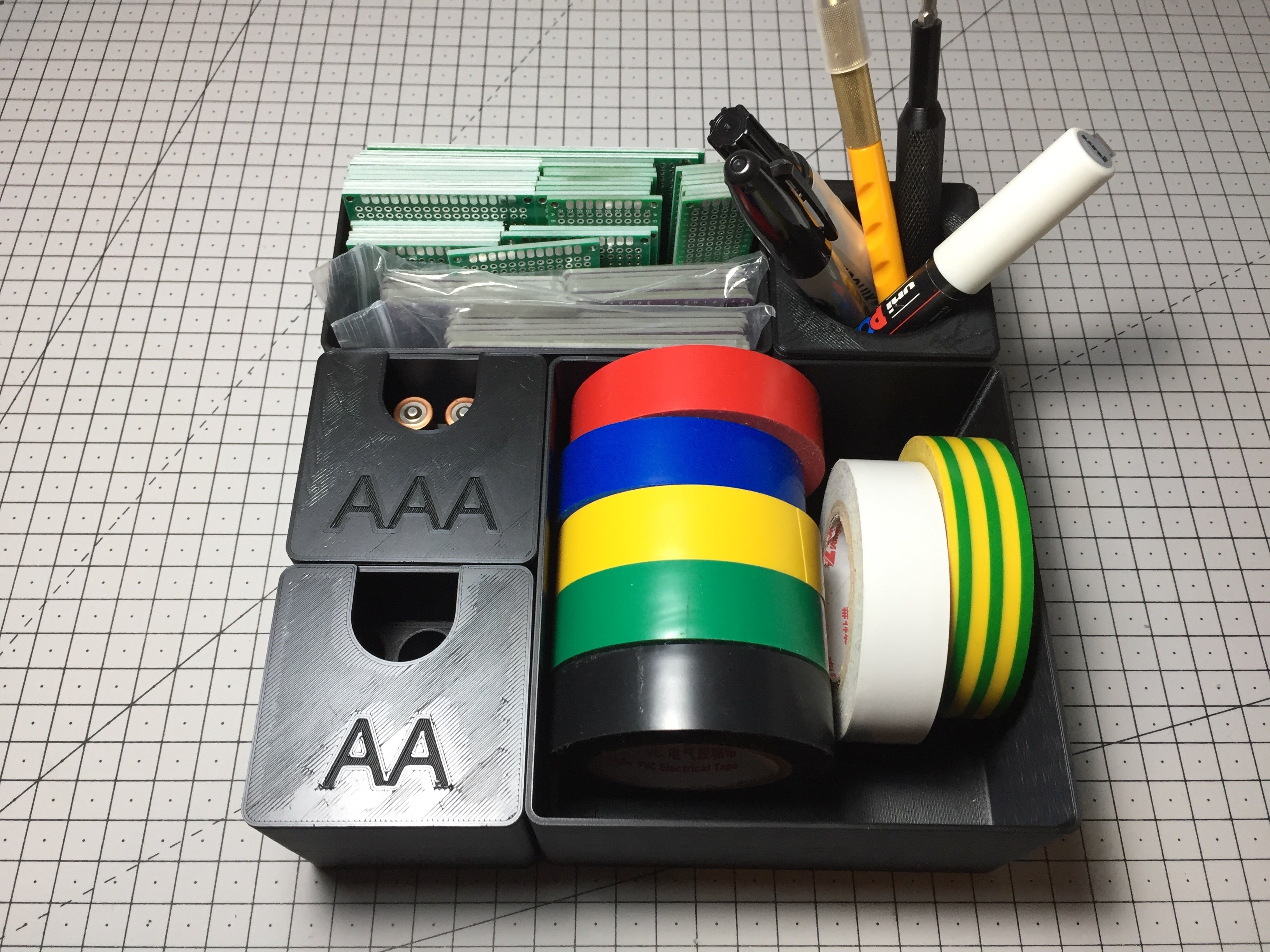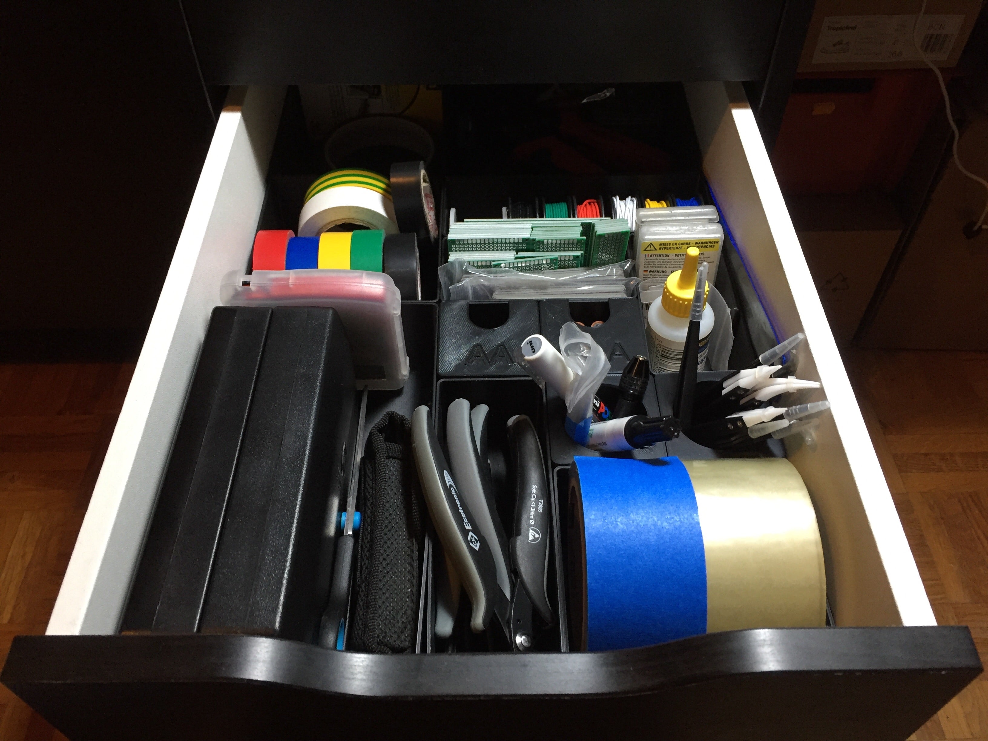 Wewnętrzne wymiary systemu odpowiadają wymiarom szuflady Alex, co ułatwia jego wdrożenie i użytkowanie. Ten projekt obejmuje moduły w różnych rozmiarach, od 1x1, 2x1, 2x2 aż do 4x2. Ponadto dostępne są również dwa niestandardowe moduły 1x1 na baterie AA i AAA oraz dwa rodzaje pokryw - jeden, który po prostu zamyka moduł, a drugi, który zamienia je w uchwyt na ołówek.