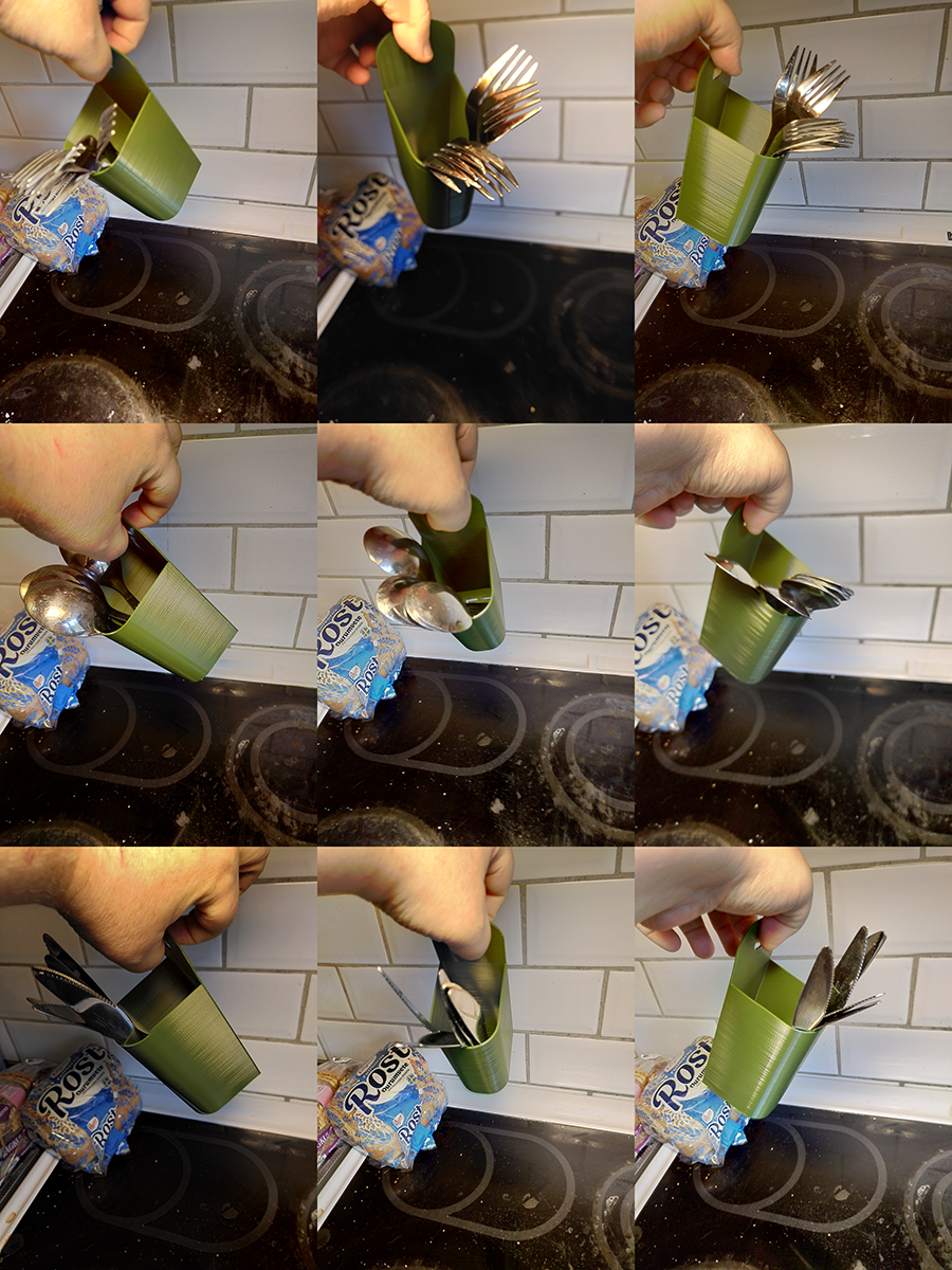 Ten praktyczny uchwyt na przybory kuchenne został zaprojektowany tak, aby pasował do haczyków IKEA Grundtal. Uchwyt może pomieścić do 12 noży, widelców, łyżek stołowych (w wersji wysokiej) lub łyżeczek do herbaty (w wersji krótkiej).