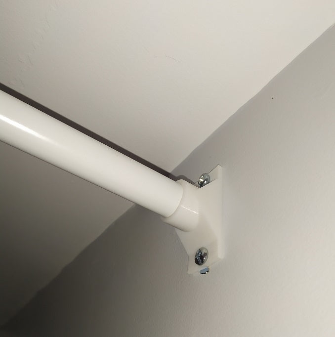 Uchwyt przeznaczony jest do karniszy Ikea RĘCKA. Oznacza to, że możesz zamontować karnisz bez użycia śrub. Wystarczy włożyć pręt do uchwytu i będzie on pewnie osadzony na swoim miejscu.