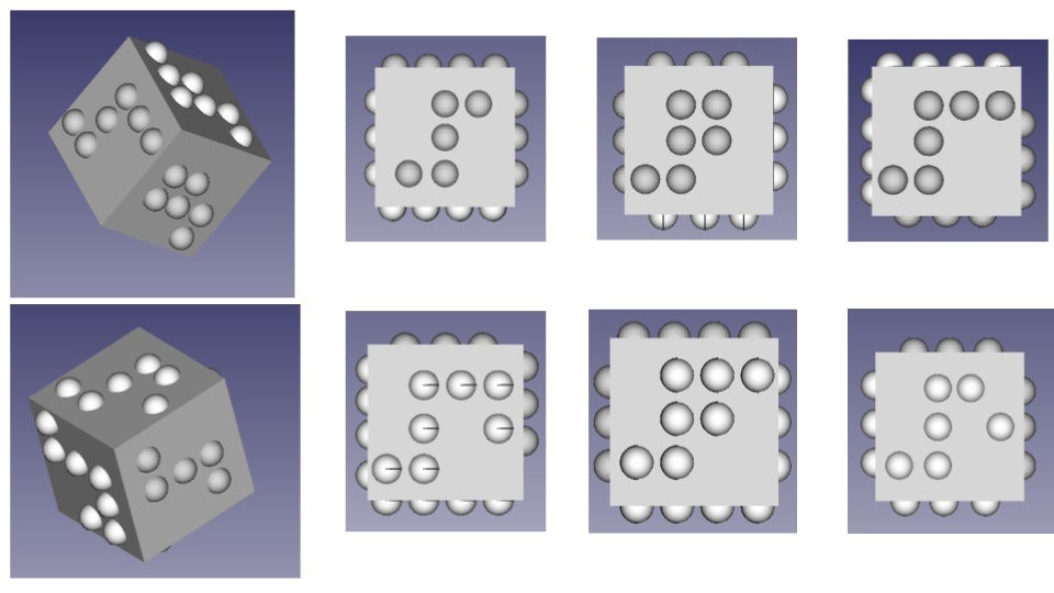 Kostka przeznaczona do gry dla osób niewidomych i niedowidzących. Może być używany do umożliwienia osobom niewidomym gry w kości poprzez dotknięcie górnej części, aby dowiedzieć się, jaki numer zagrali.