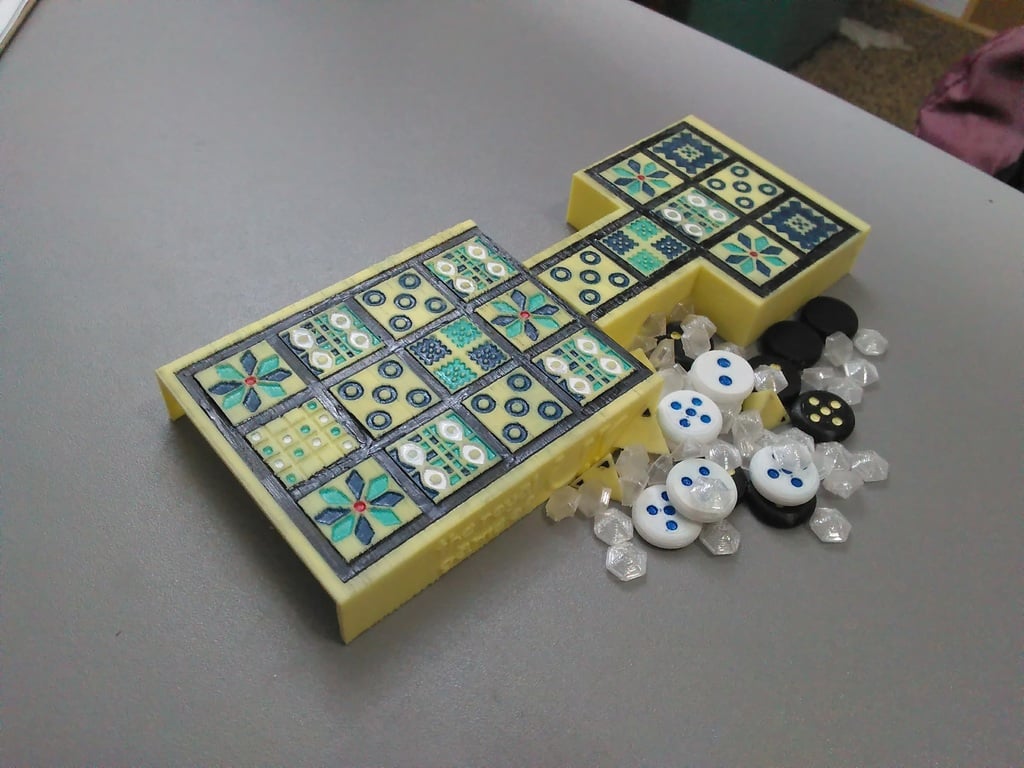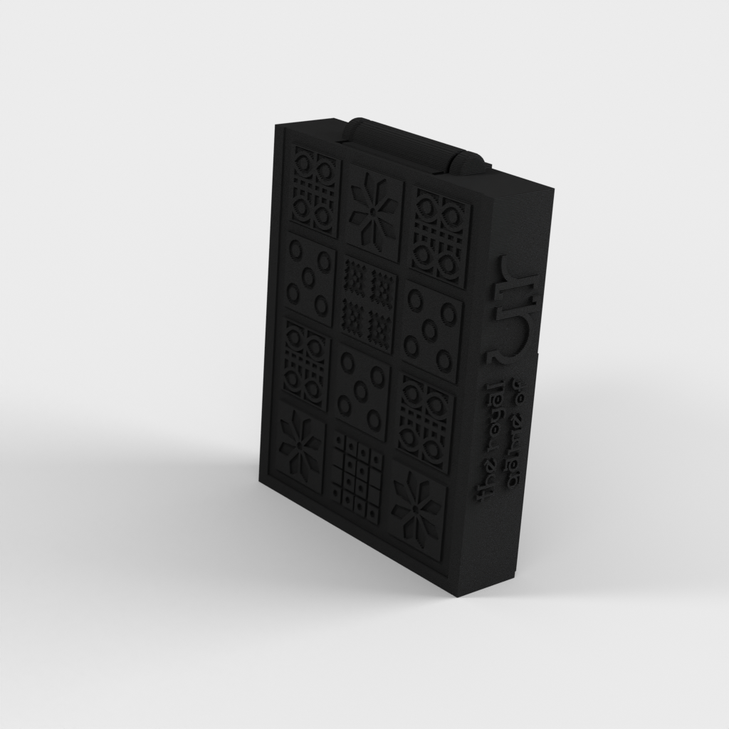 Drukowana w 3D Królewska Gra z Ur z zawiasowym stołem do przechowywania to autentyczna wersja starożytnej Gry z Ur. Stół został zaprojektowany z wbudowanym miejscem do przechowywania kości i pionków, co ułatwia organizację i transport elementów gier. Dzięki temu idealnie nadaje się dla tych, którzy chcą zorganizowanego i praktycznego rozwiązania do przechowywania elementów gry Ur.