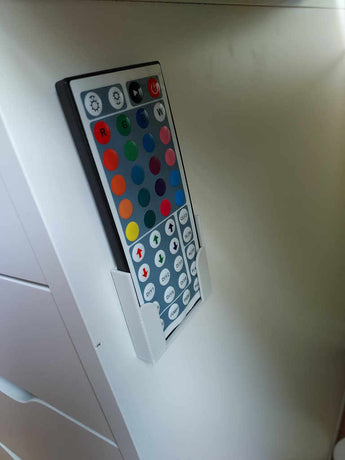 Ten praktyczny uchwyt został zaprojektowany, aby uporządkować pilot do taśmy RGB LED i mieć go w zasięgu ręki. Można go łatwo przymocować do ściany lub powierzchni mebla za pomocą taśmy dwustronnej, tworząc uporządkowane otoczenie. Ten uchwyt na pilota zapewnia, że pilot pozostanie blisko czujnika LED, dzięki czemu możesz obsługiwać paski LED bez konieczności wyjmowania pilota z uchwytu. O wymiarach 56 x 12,5 cm zapewnia stabilne i dedykowane miejsce na pilota, przyczyniając się do utrzymania porządku w domu.