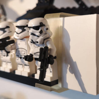 Stojak na minifigurki LEGO, który pasuje do półki o szerokości 50 mm. Idealny do stylowego organizowania i prezentowania swojego zestawu minifigurek LEGO.