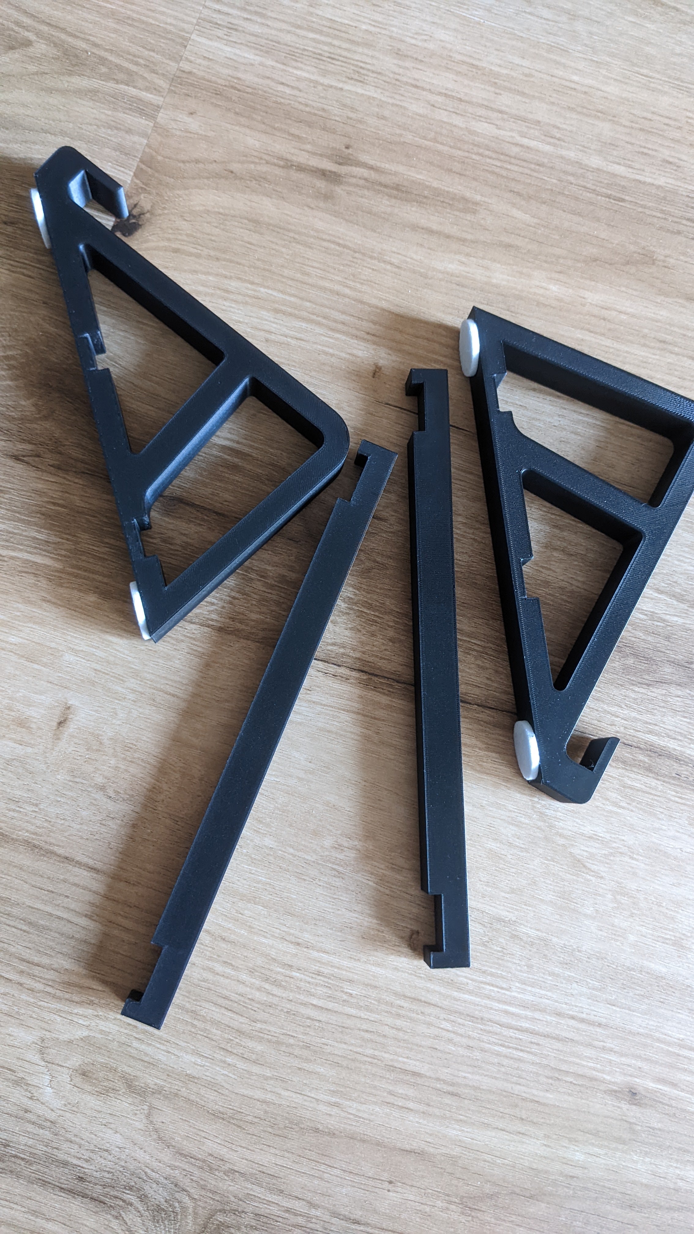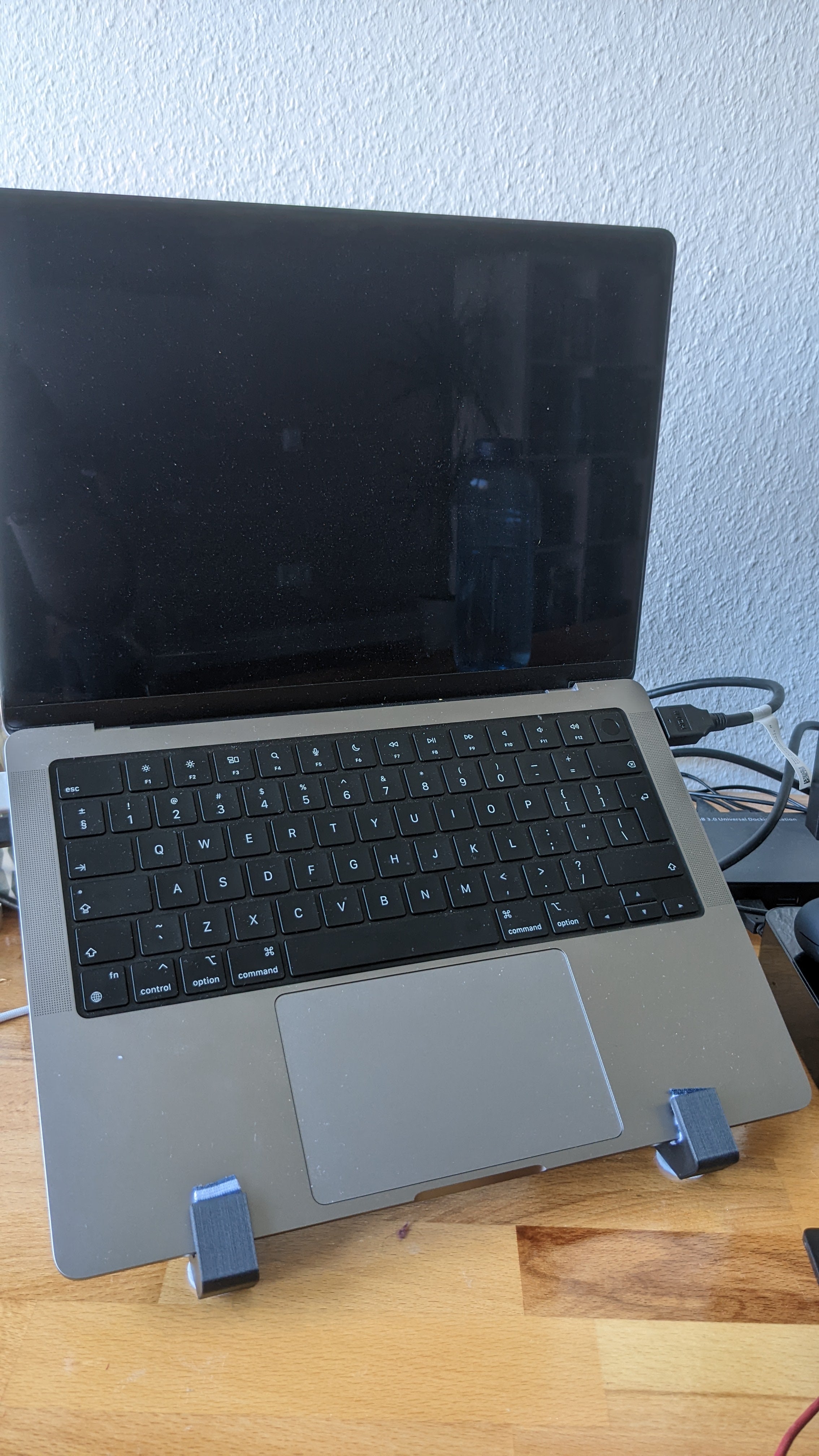 Nasza podstawka pod Macbooka Pro jest idealna do przechowywania Macbooka 14' (2021) lub dowolnego innego laptopa. Odległość między dwoma uchwytami wynosi 18 cm, więc jest wystarczająco dużo miejsca na większość gładzików. Stojak zawiera 2 uchwyty i 2 osie, które łatwo się ze sobą łączą. Zalecamy dodanie szmatki lub podobnego materiału do haczyków, aby chronić laptopy przed zarysowaniem.