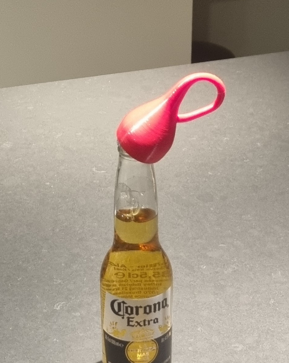 Otwieracz do butelek w kształcie butelki Kleina, 4-wymiarowego obiektu, który nie ma różnicy między wnętrzem a zewnętrzem. Należy pamiętać, że ten nadruk może być w stanie otworzyć tylko zwykłe butelki, niestety nie butelki Klein.