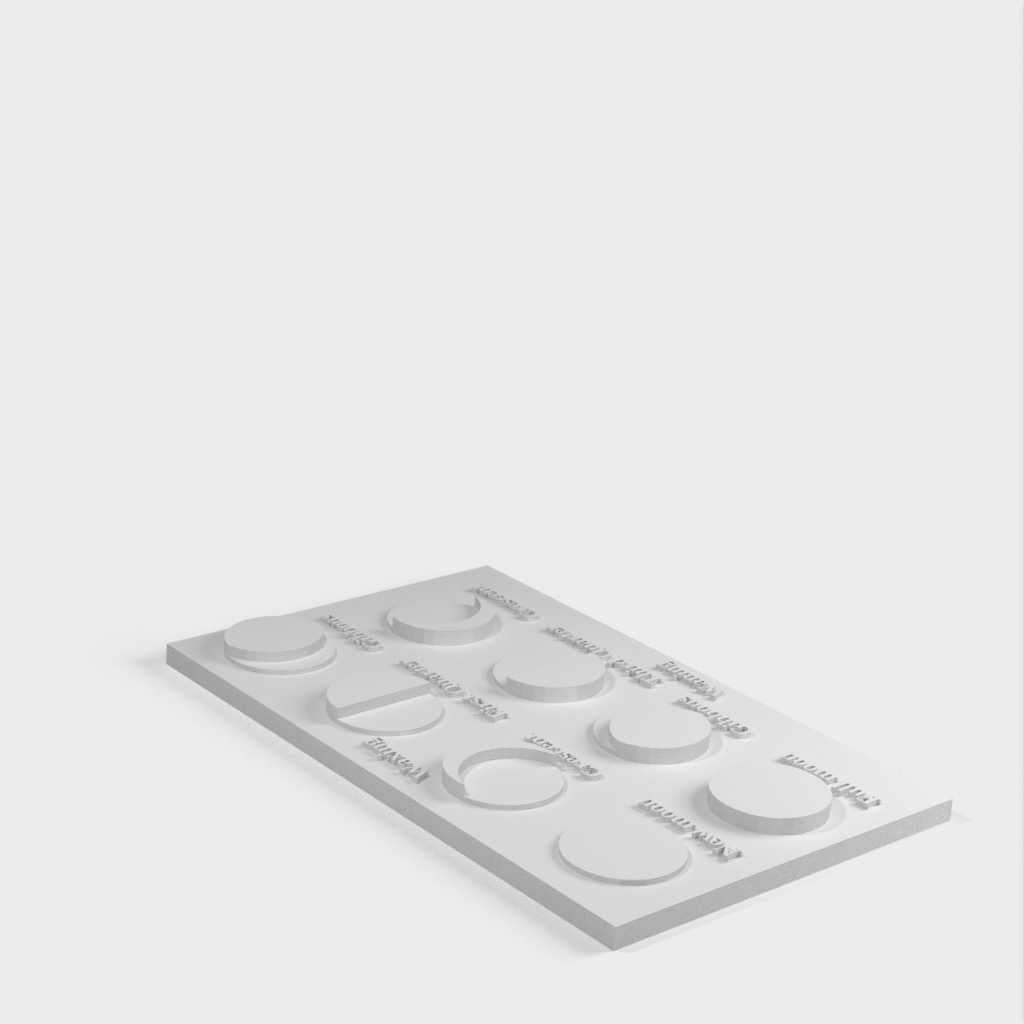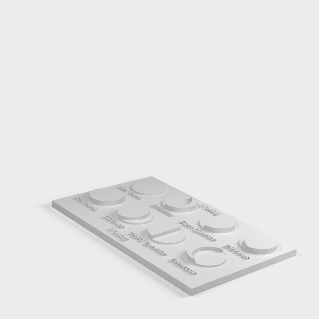 Jest to schematyczna reprezentacja faz księżyca. Model można wydrukować w różnych rozmiarach i wersjach, w tym w wersji nieoznakowanej, którą można dać uczniowi do uzupełnienia.