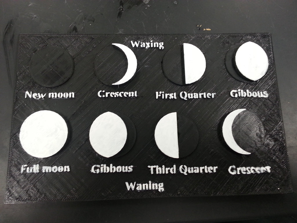 Do użytku w klasie, niedokończony model może być wykorzystany jako ćwiczenie dla uczniów, aby wypełnić oświetloną część księżyca dla każdej fazy.