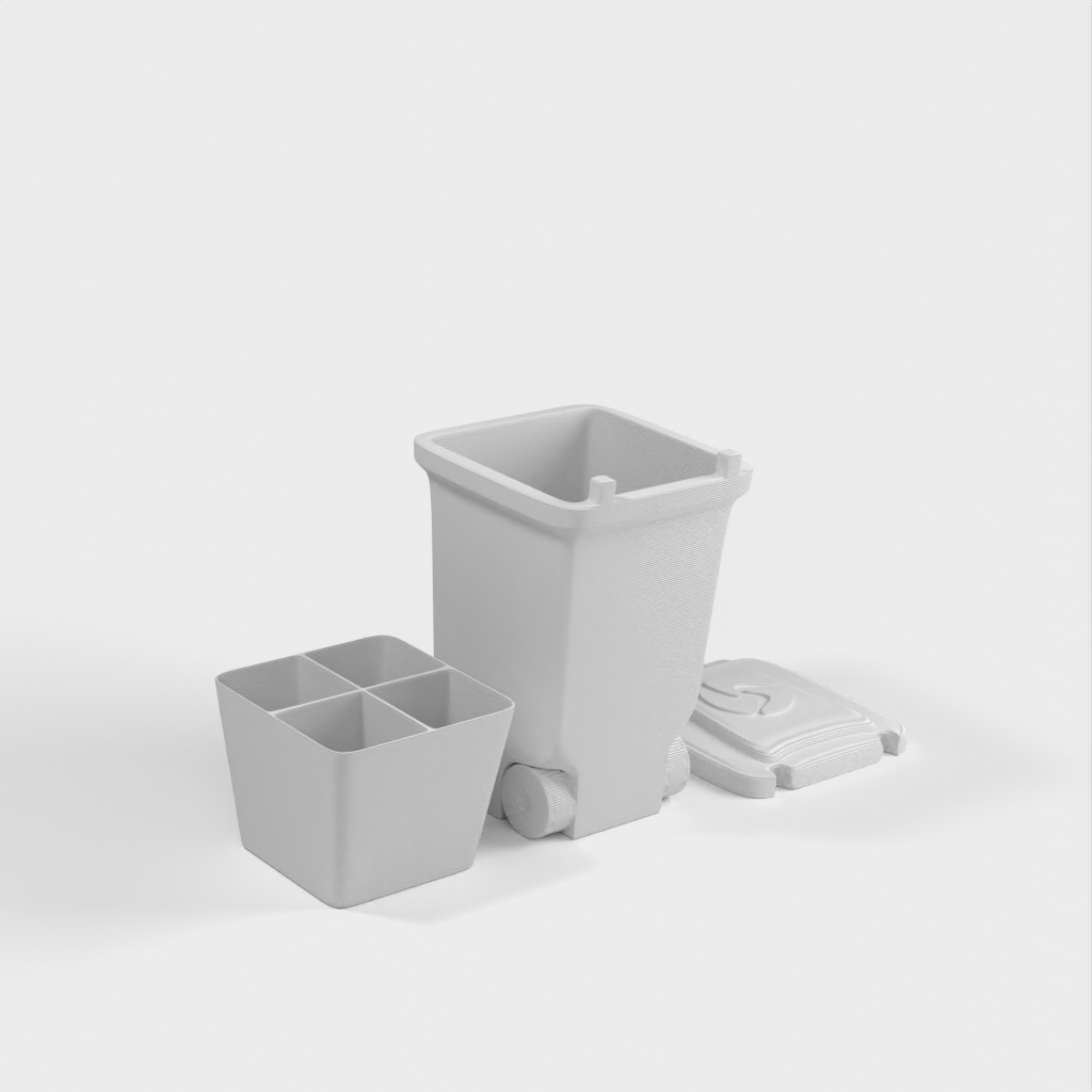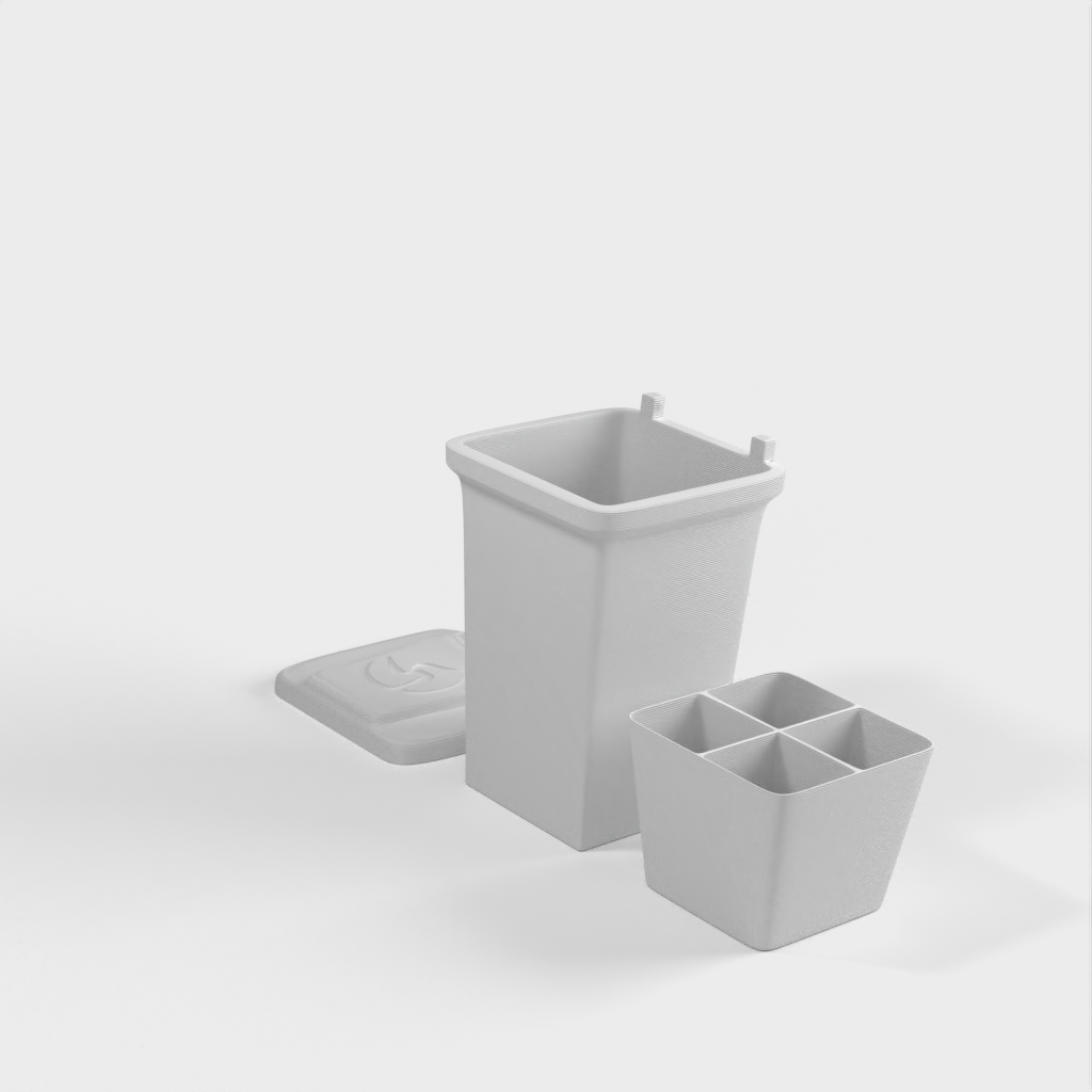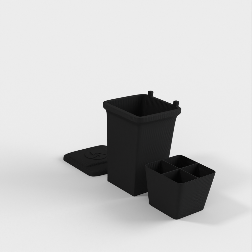 Miniaturowy pojemnik do przechowywania małych przedmiotów, takich jak nakrętki i śruby. Części można drukować oddzielnie dla różnych materiałów lub wszystkie naraz. Pokrywa zatrzaskuje się na miejscu, a wkładka jest wyjmowana. Zaprojektowany z okazji premiery naszego nowego materiału, Landfillament, który jest wykonany ze śmieci! Dowiedz się więcej tutaj: https://www.youtube.com/watch?v=TSWXhDounRY