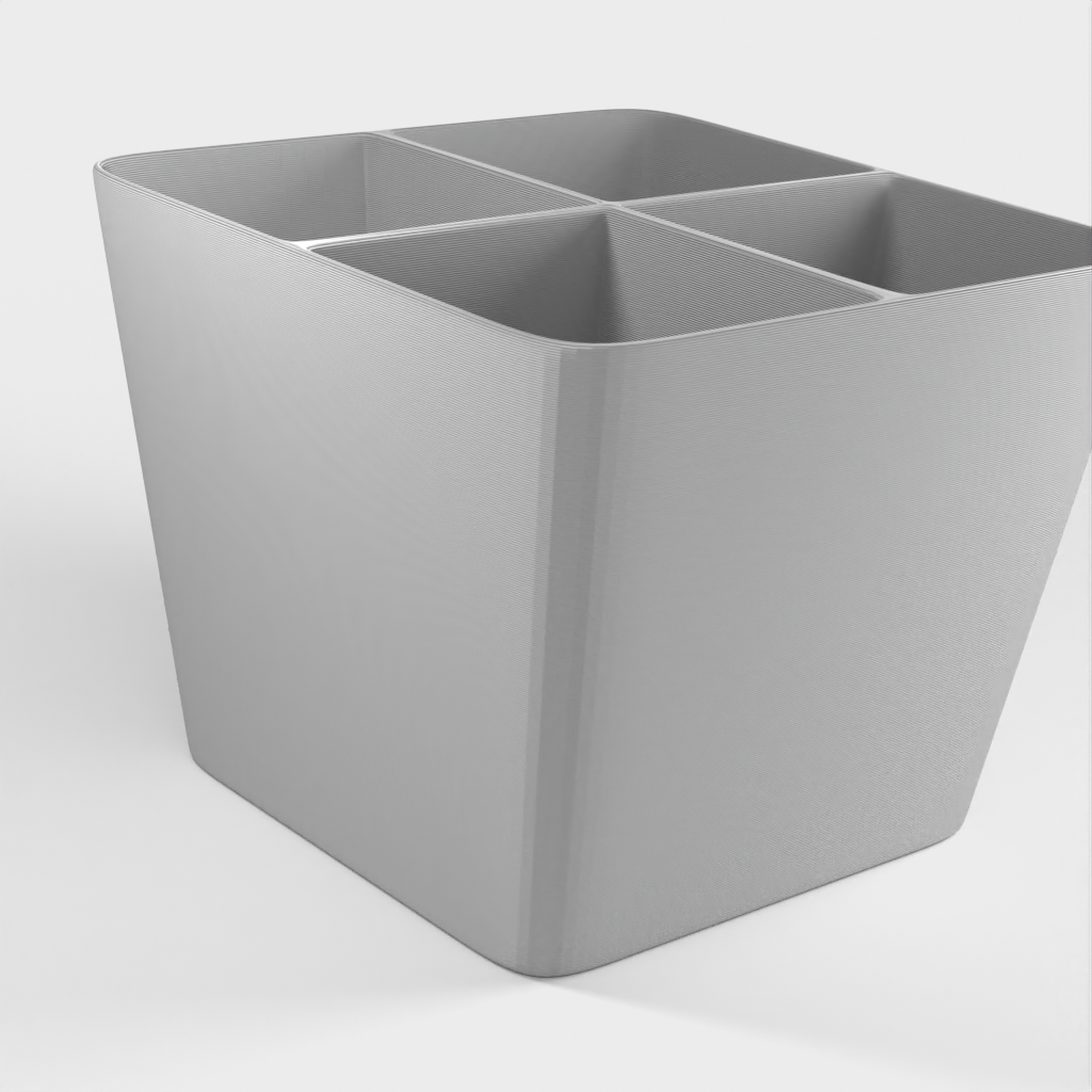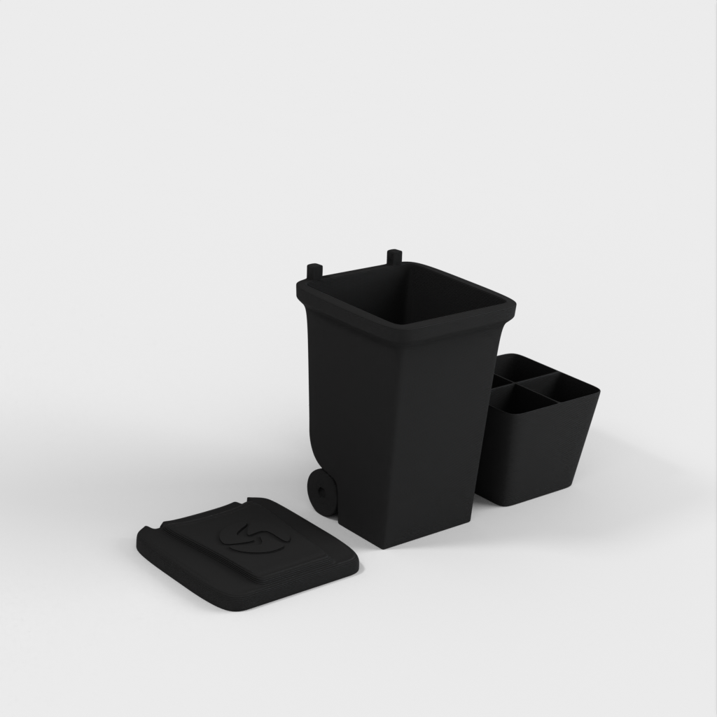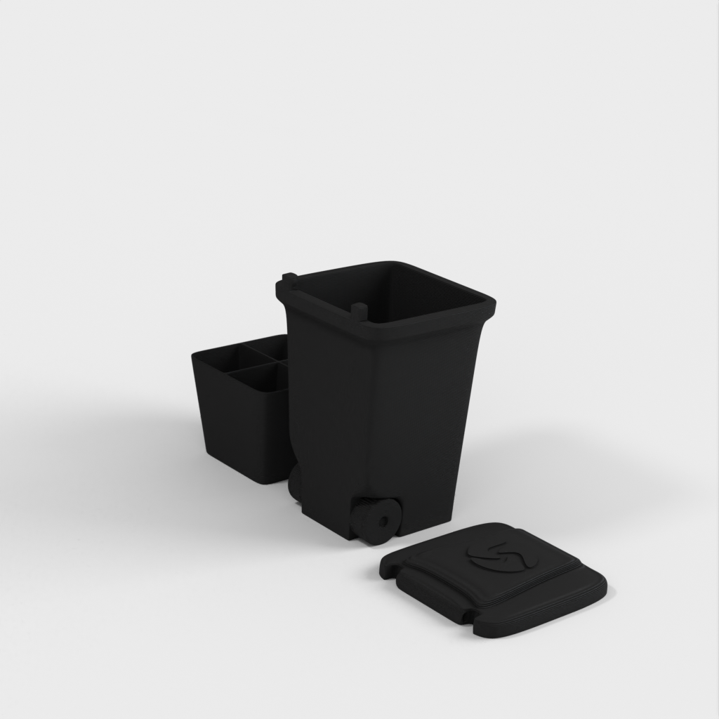 Miniaturowy pojemnik do przechowywania małych przedmiotów, takich jak nakrętki i śruby. Części można drukować oddzielnie dla różnych materiałów lub wszystkie naraz. Pokrywa zatrzaskuje się na miejscu, a wkładka jest wyjmowana. Zaprojektowany z okazji premiery naszego nowego materiału, Landfillament, który jest wykonany ze śmieci! Dowiedz się więcej tutaj: https://www.youtube.com/watch?v=TSWXhDounRY