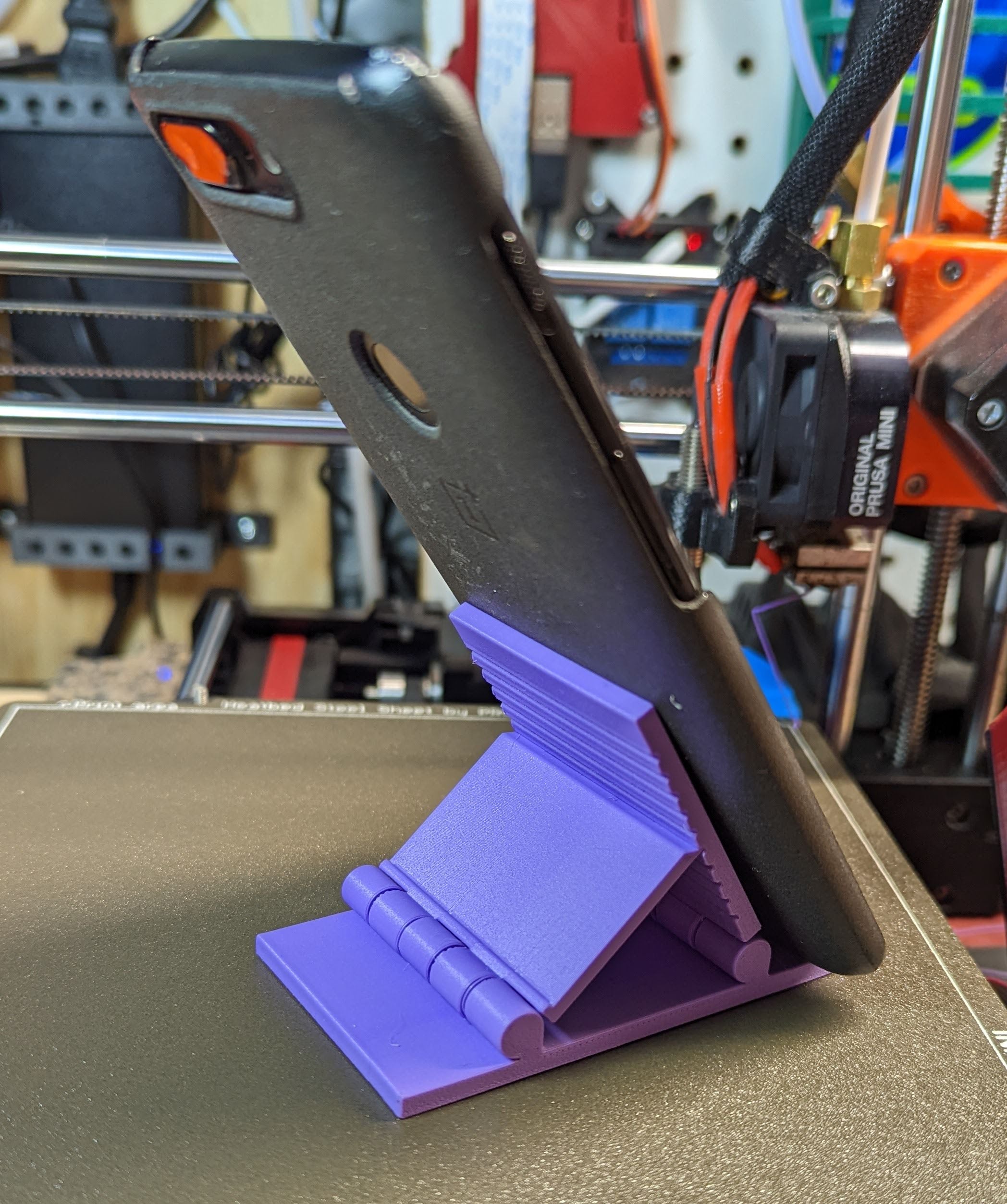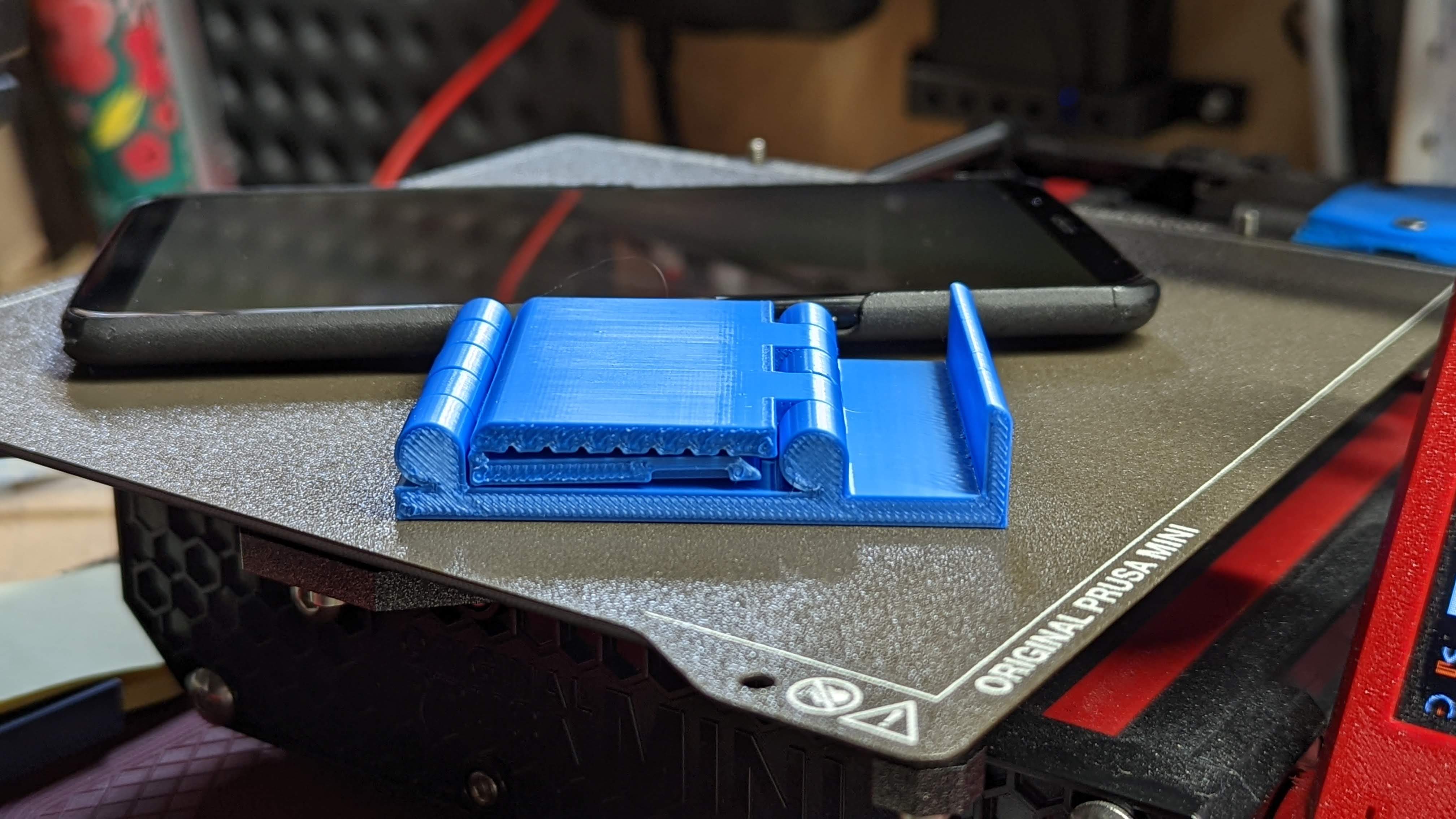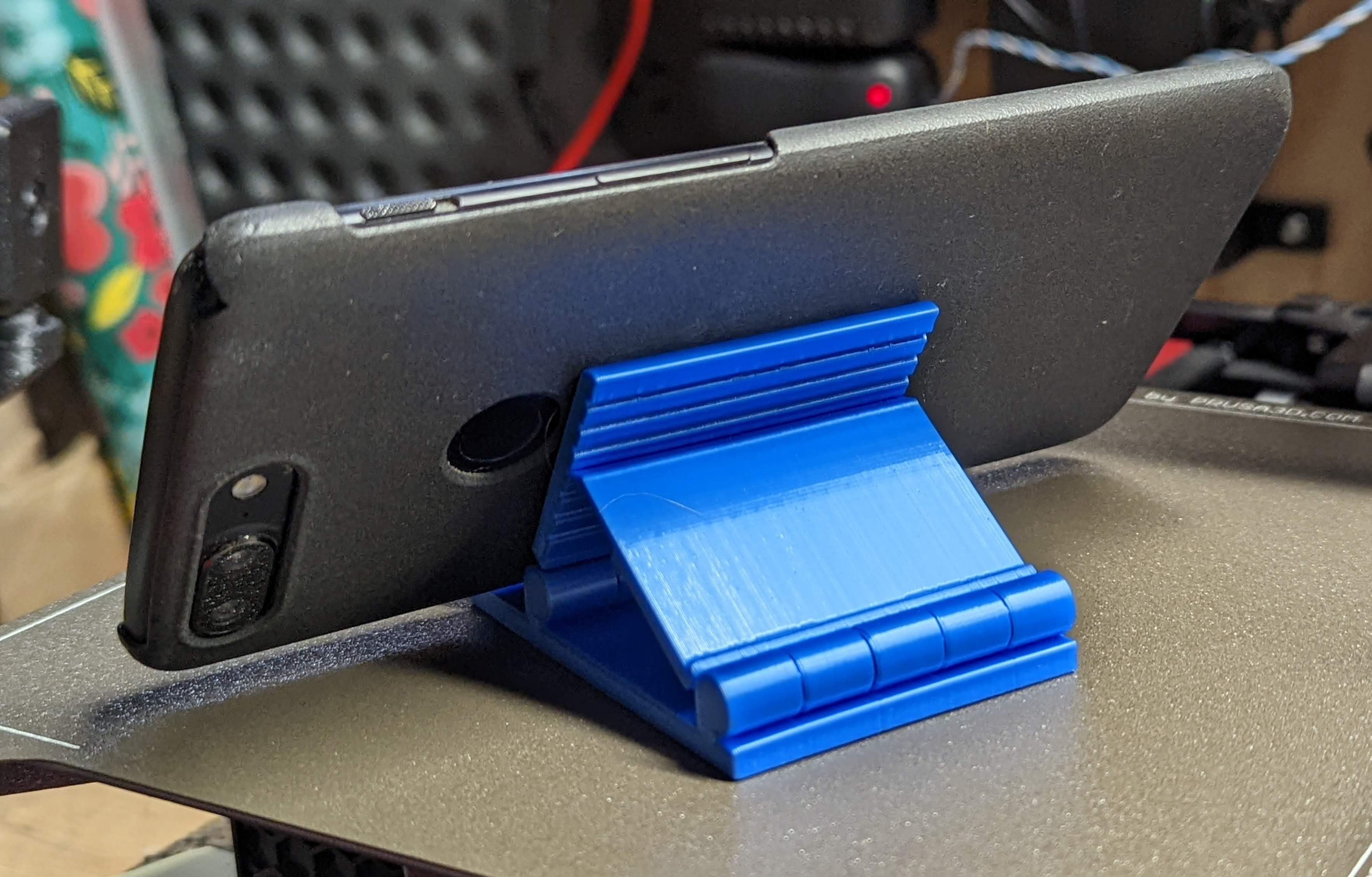 Minimalistyczny, ultraprzenośny, składany uchwyt na telefon to mały, składany uchwyt na telefon, który z łatwością mieści się w torbie na laptopa lub dowolnej kieszeni. Składa się na płasko i utrzymuje większość telefonów komórkowych pod odpowiednim kątem. Dostępne są rozmiary 50 mm i 80 mm. Rozmiar 50 mm jest ultraprzenośny i utrzymuje każdy telefon w pozycji pionowej, podczas gdy 80 mm pasuje do szerokości większości telefonów komórkowych, jeśli jest to preferowane. Może trzymać telefon pionowo i nie przewróci się przy dotknięciu ekranu, chociaż najlepiej umieścić go poziomo, aby uzyskać dostęp do portu USB.